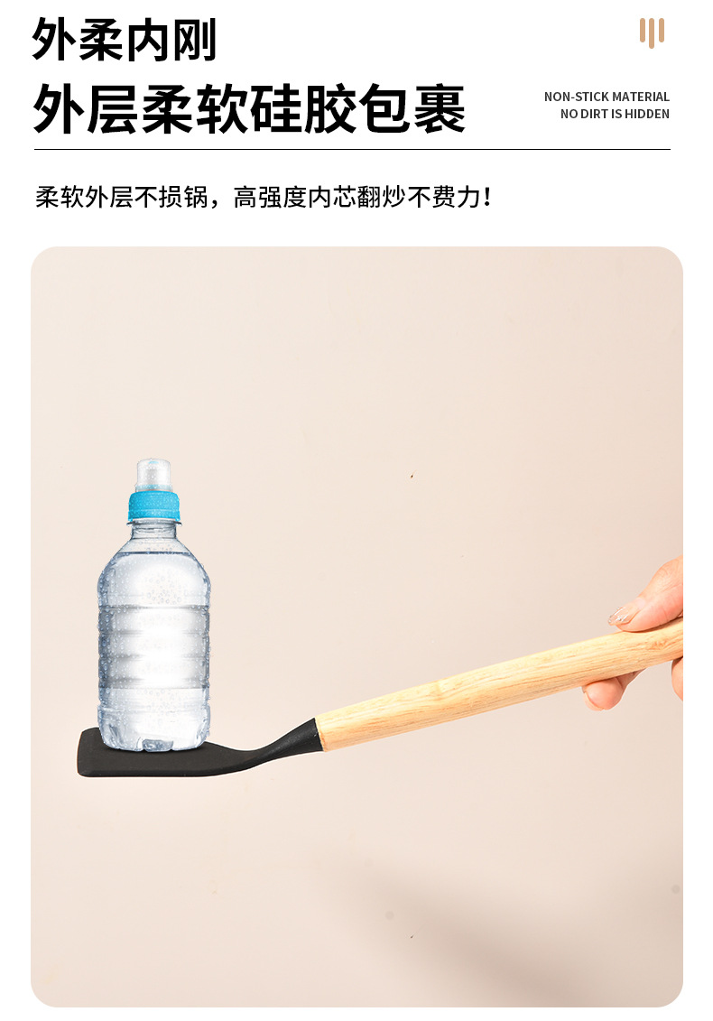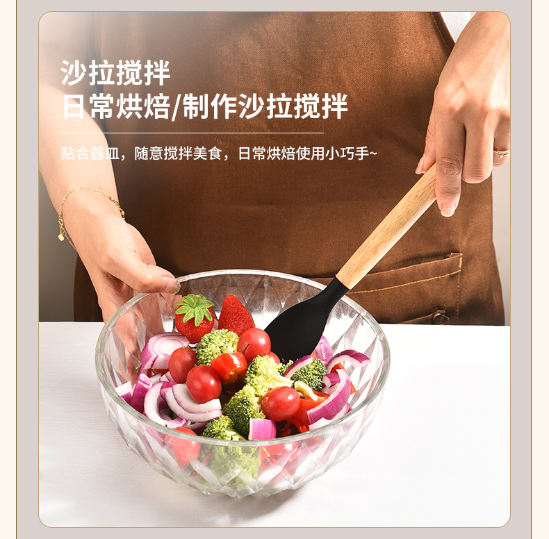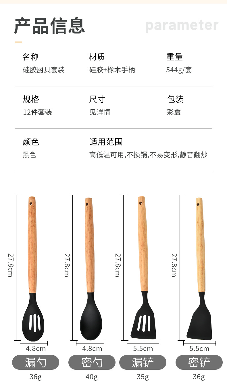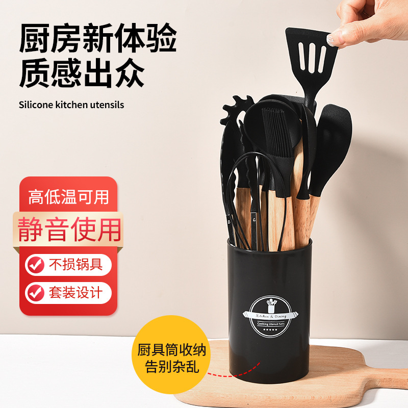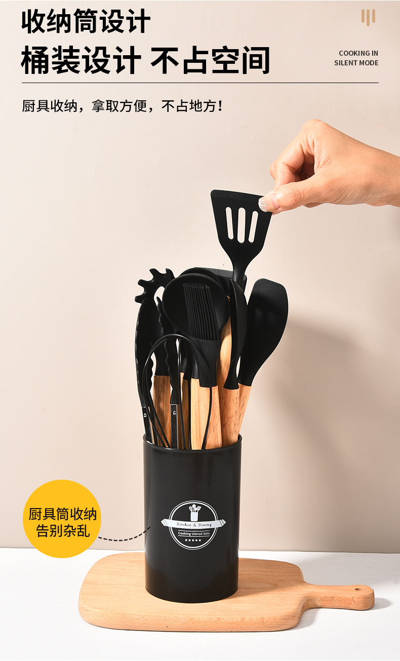 木柄硅胶厨具12件套 不粘锅烹饪铲勺 耐高温硅胶厨具十二件套装