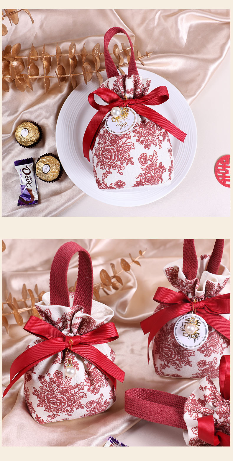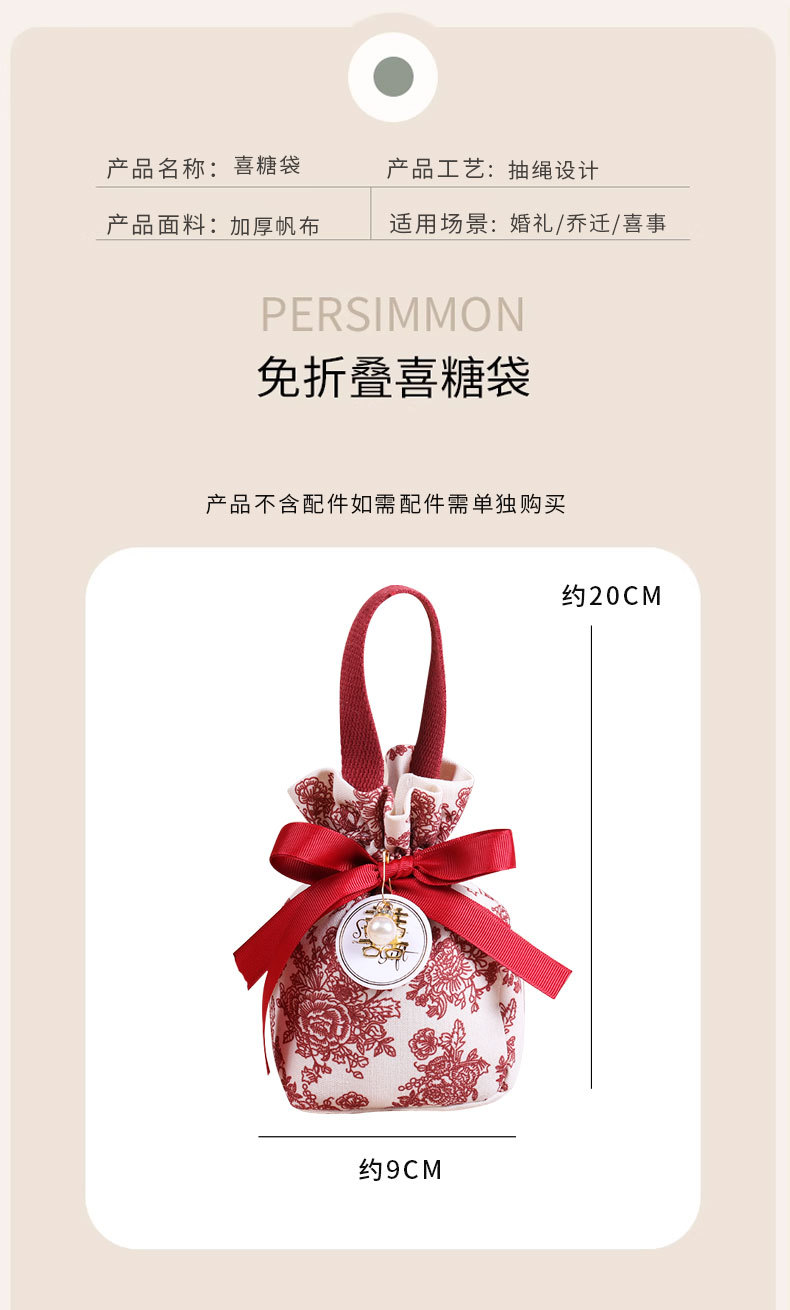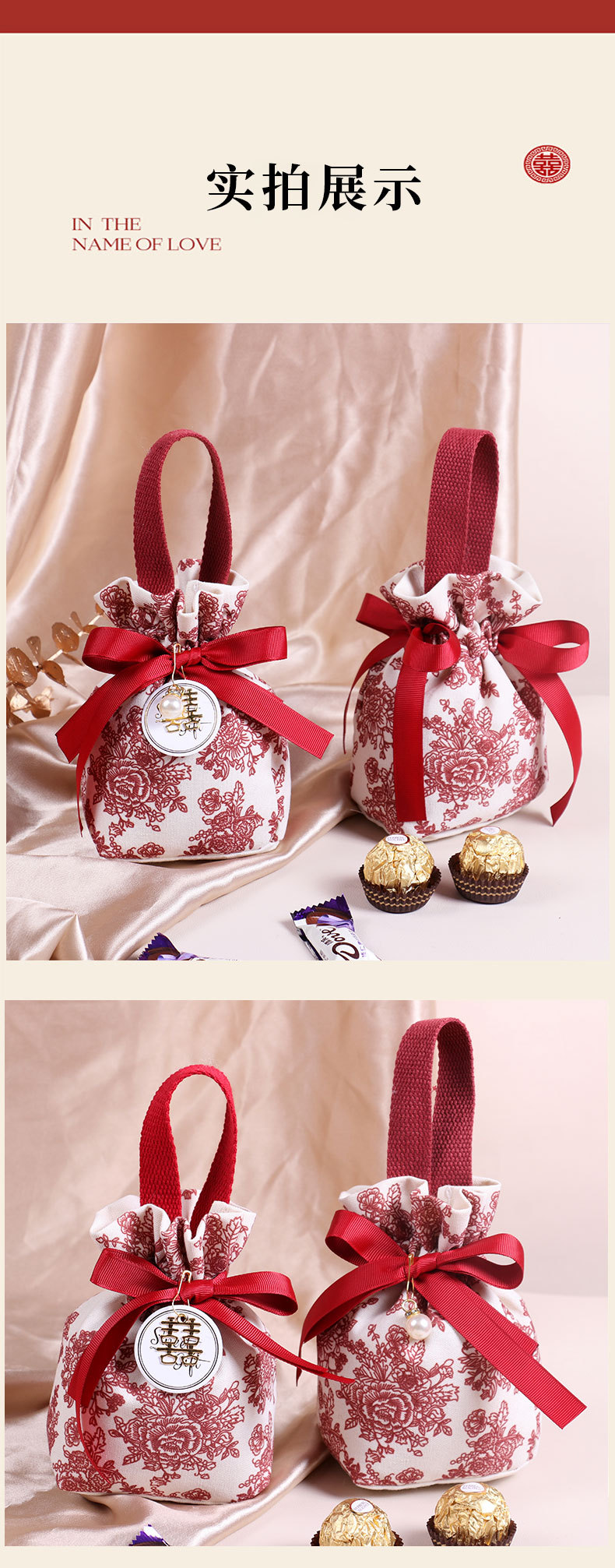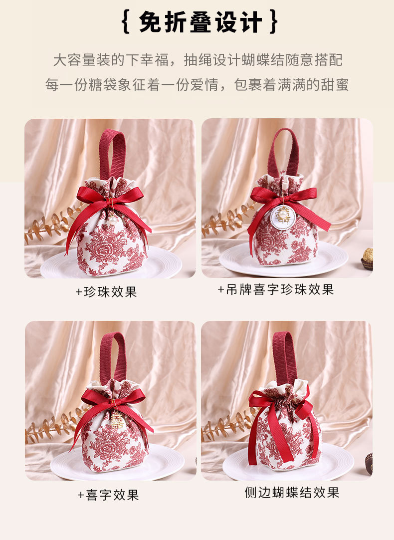 结婚喜糖袋帆布喜糖盒子高级感糖果袋布袋婚礼束口袋中式喜糖包