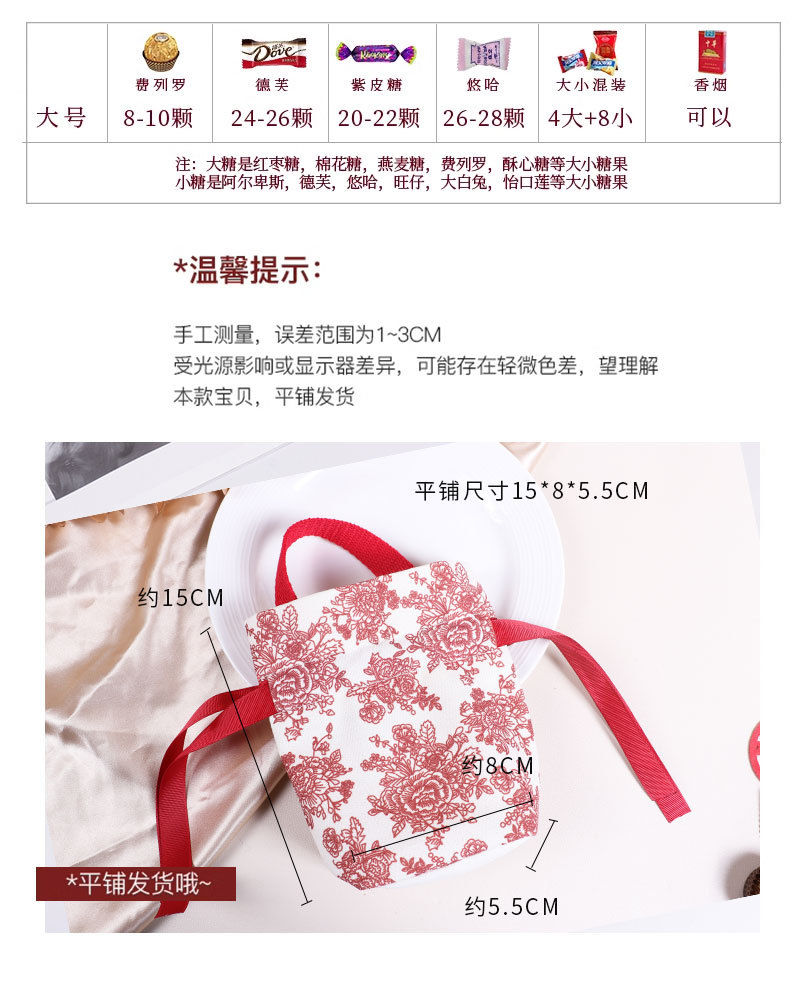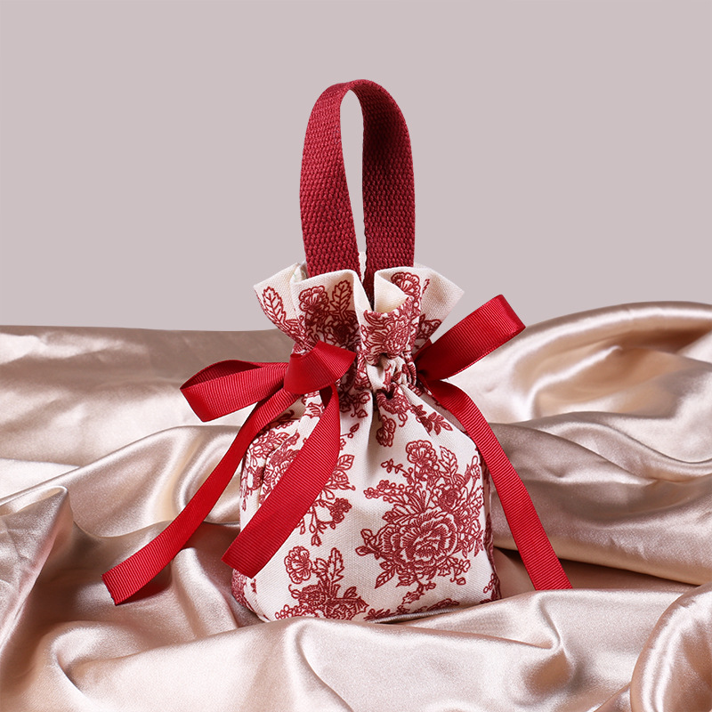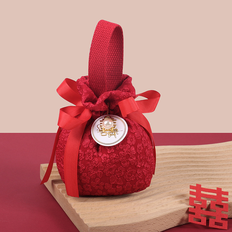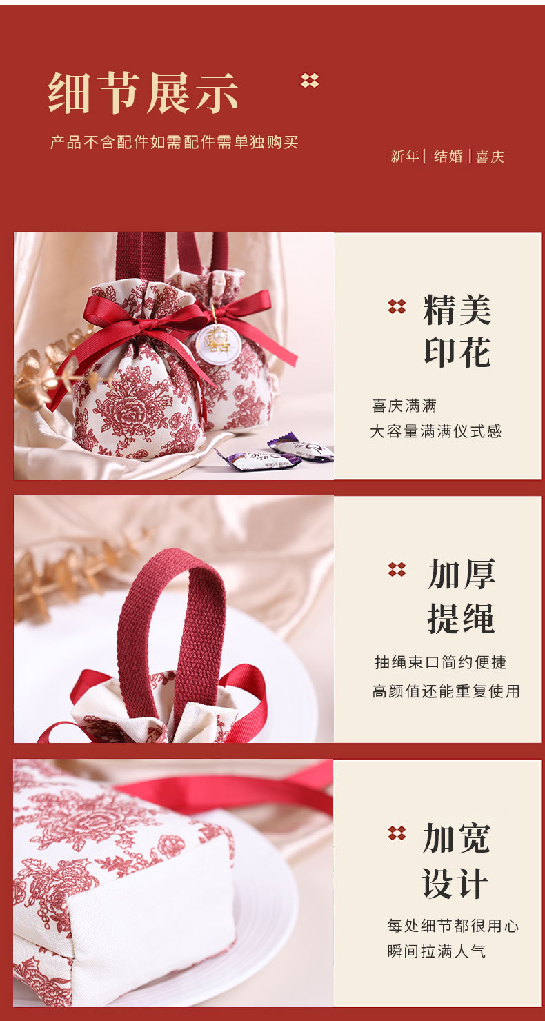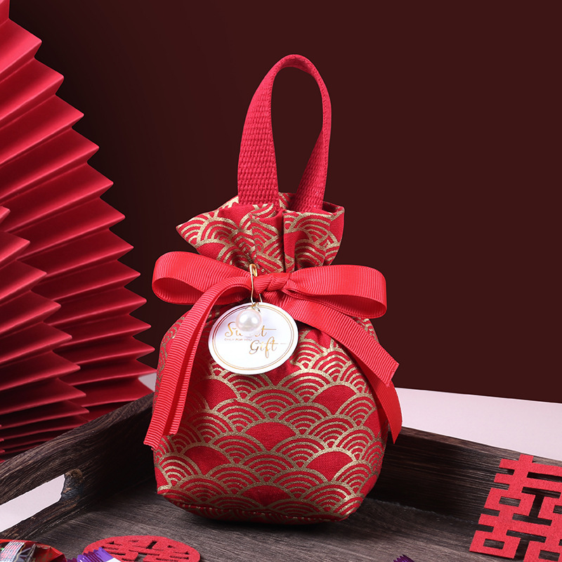 结婚喜糖袋帆布喜糖盒子高级感糖果袋布袋婚礼束口袋中式喜糖包