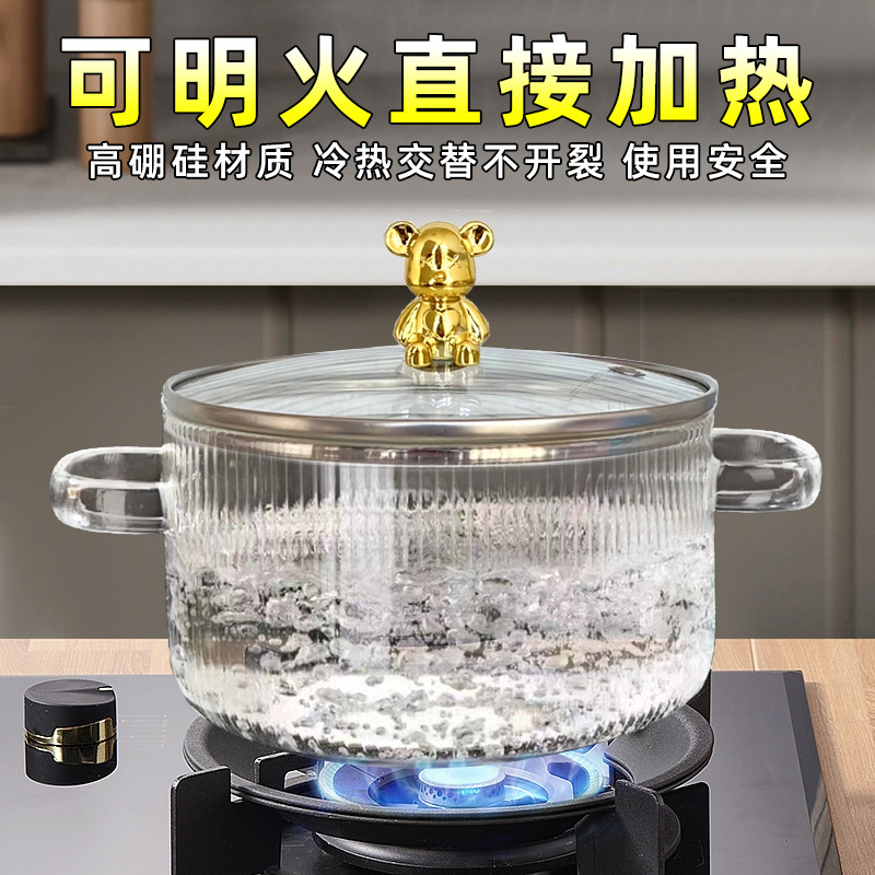 高硼硅小熊玻璃锅明火耐高温双耳奶锅电陶炉汤锅煮酒锅热粥炖汤锅