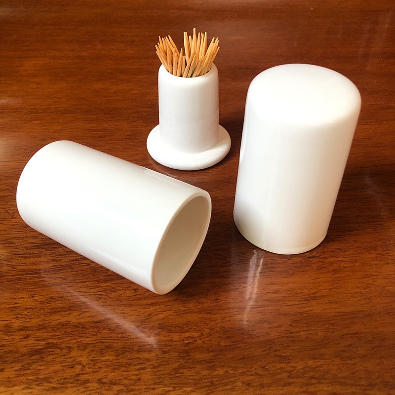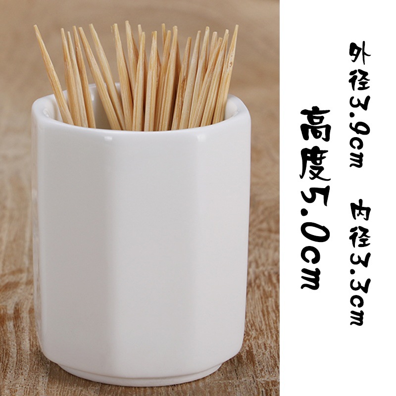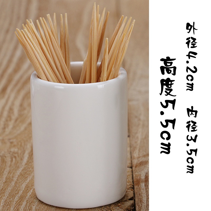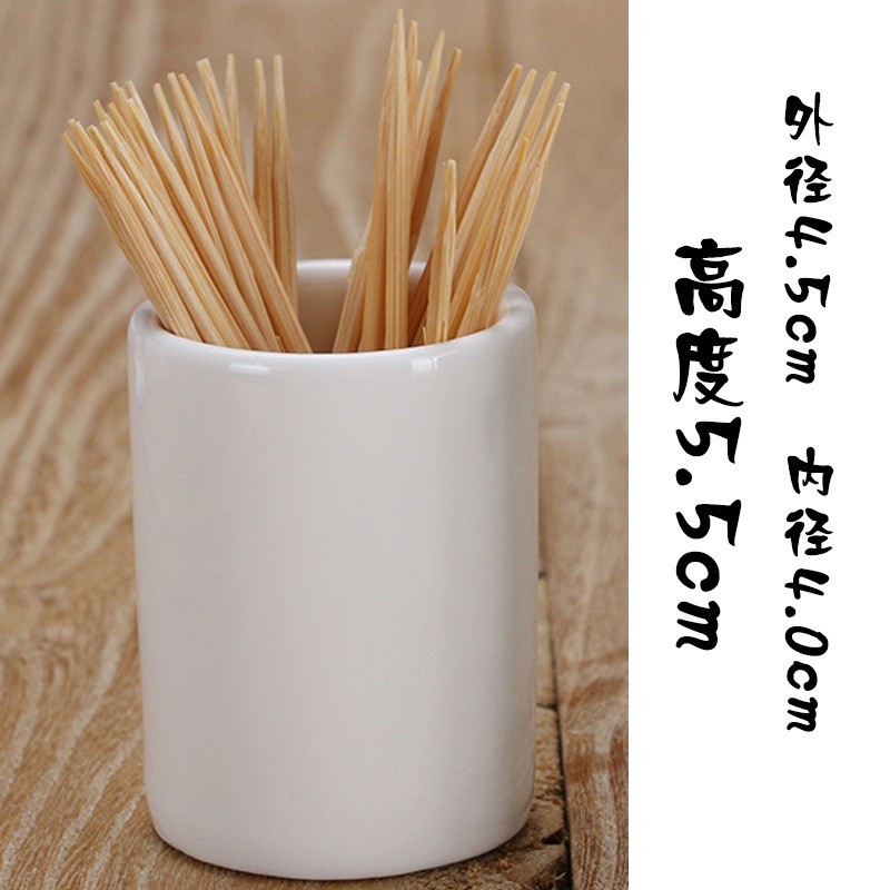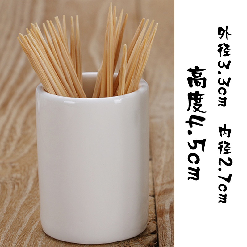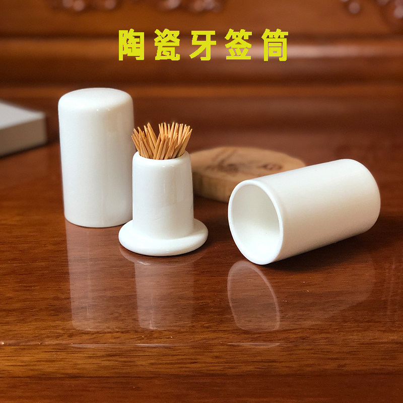 简约纯白陶瓷牙签筒家用装牙签商用金边牙签盒牙签罐批发logo