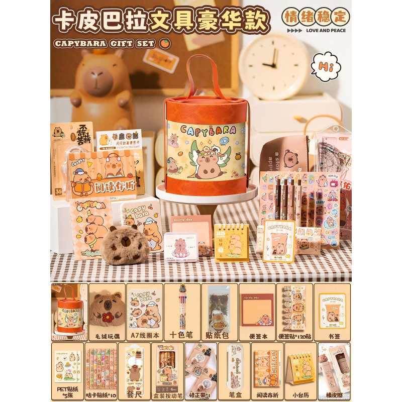 卡皮巴拉文具套装抱抱桶学习用品大礼包熊猫礼盒套装学生奖品礼物