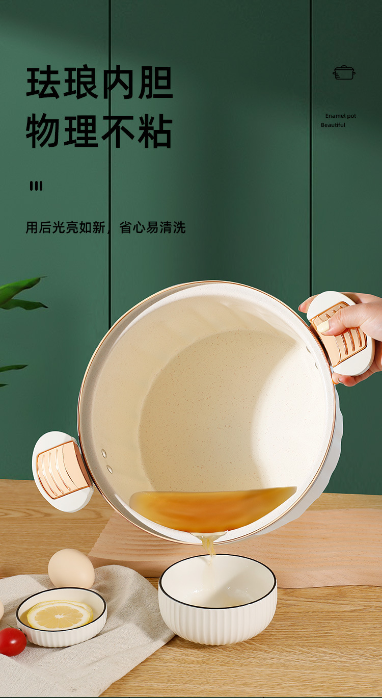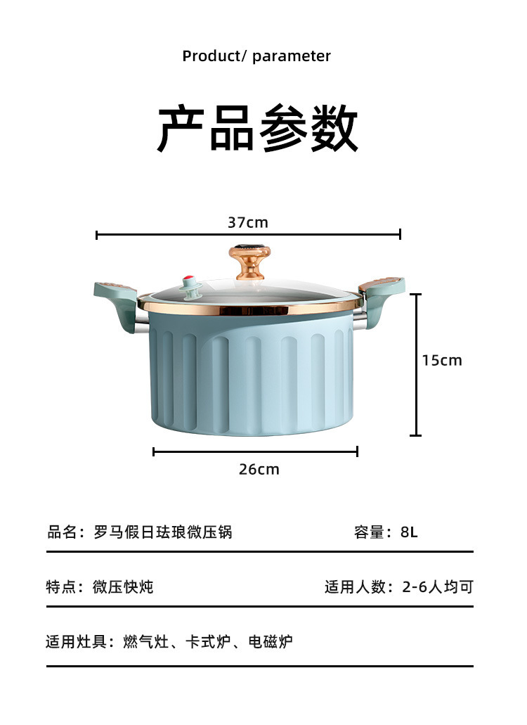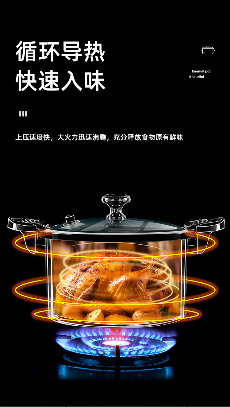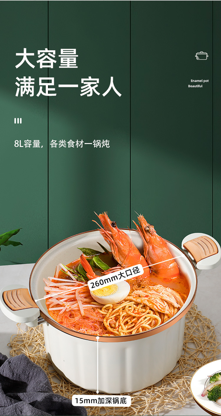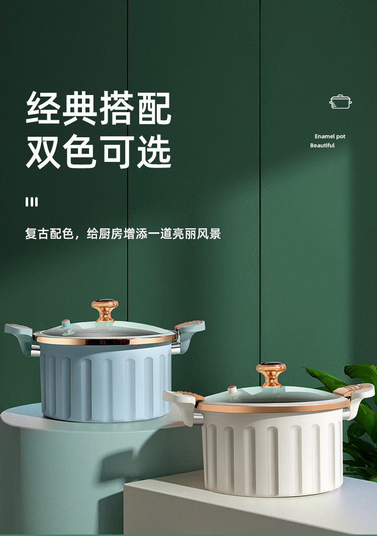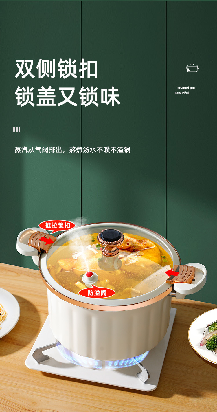 罗马假日珐琅微压锅 韩式真空不粘汤锅新款多功能焖煮煲双耳炖锅