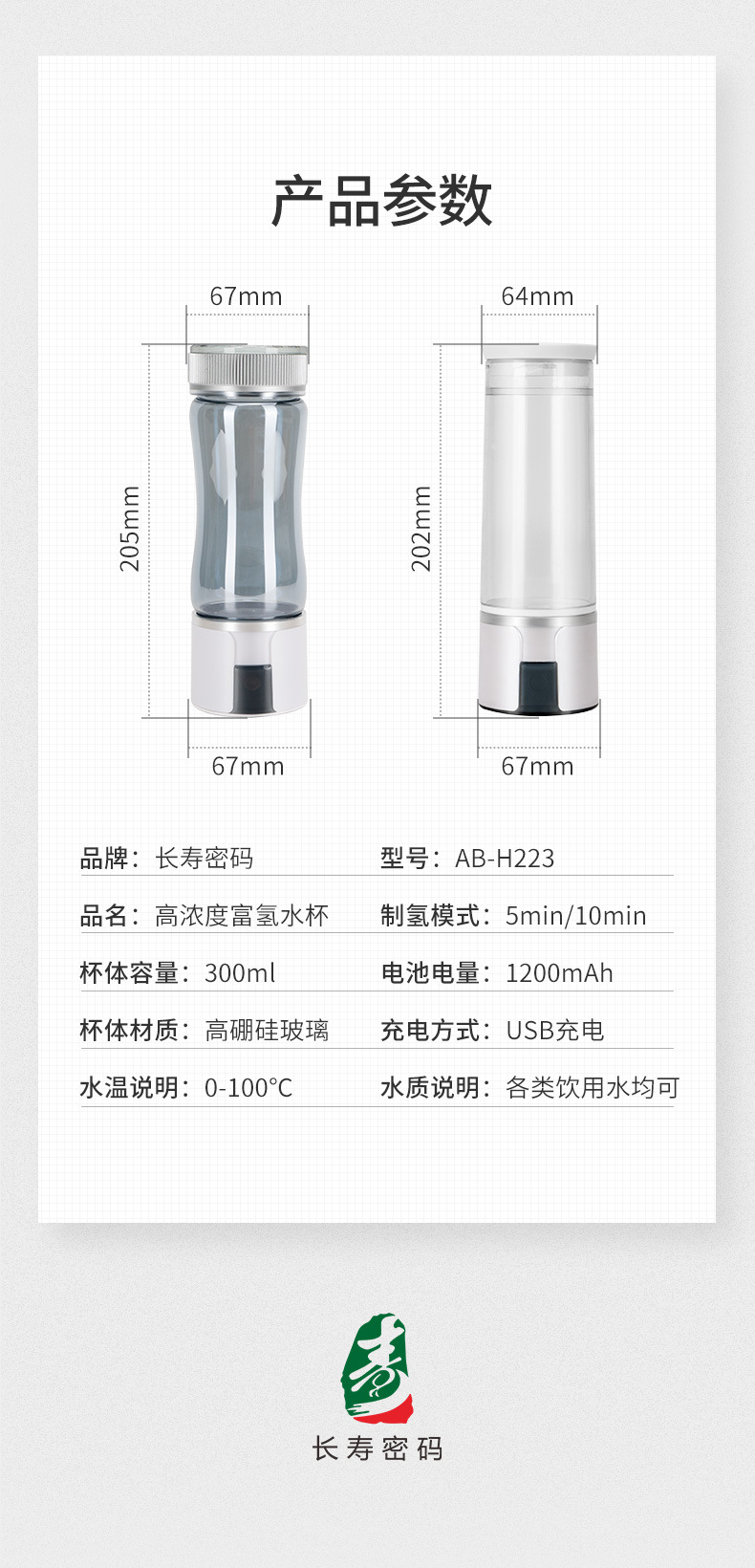 跨境亚马逊直供SPE技术高浓度富氢水杯可分离排臭氧余氯水素水壶