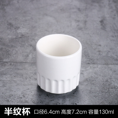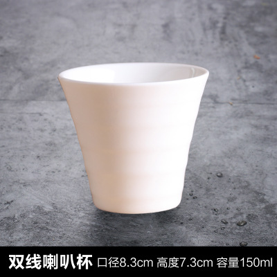 酒店人气泡茶餐馆茶杯纯白指印杯餐饮花茶水杯半纹镁质陶瓷喇叭杯
