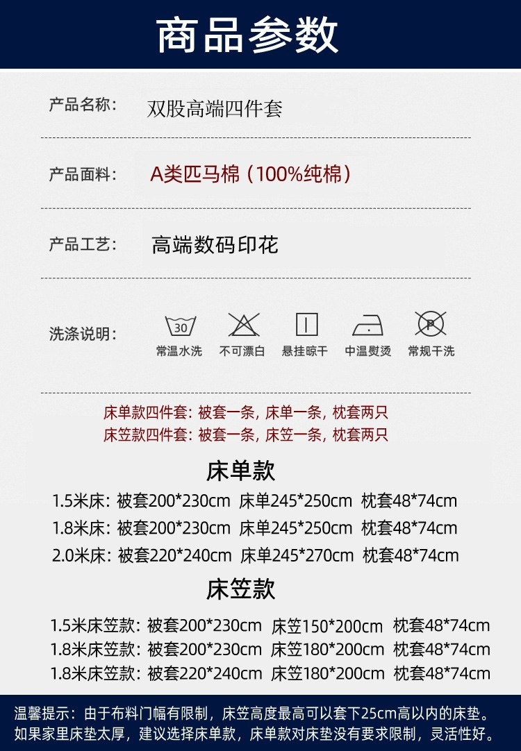 | 1.8m床笠款:被套200X230/四件套 | USD $98.92 | 2575 piece available |