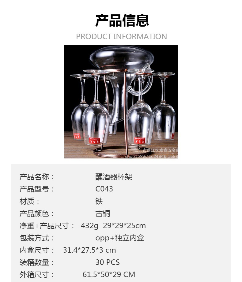 醒酒器分酒器架支架金属醒酒器倒挂架 醒酒壶沥干架干燥架红酒架