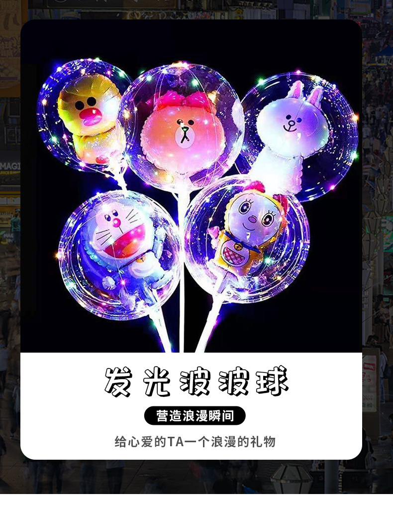 发光波波球卡通造型街卖充气波波球闪光儿童广场夜市摆摊波波球