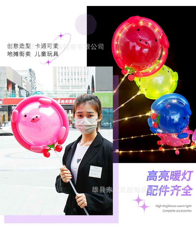 街卖波波球造型夜市摆摊热地推扫码卡通发光气球可爱DIY地摊玩具
