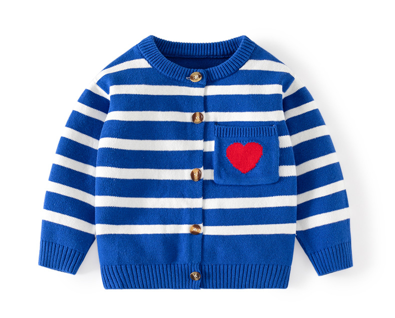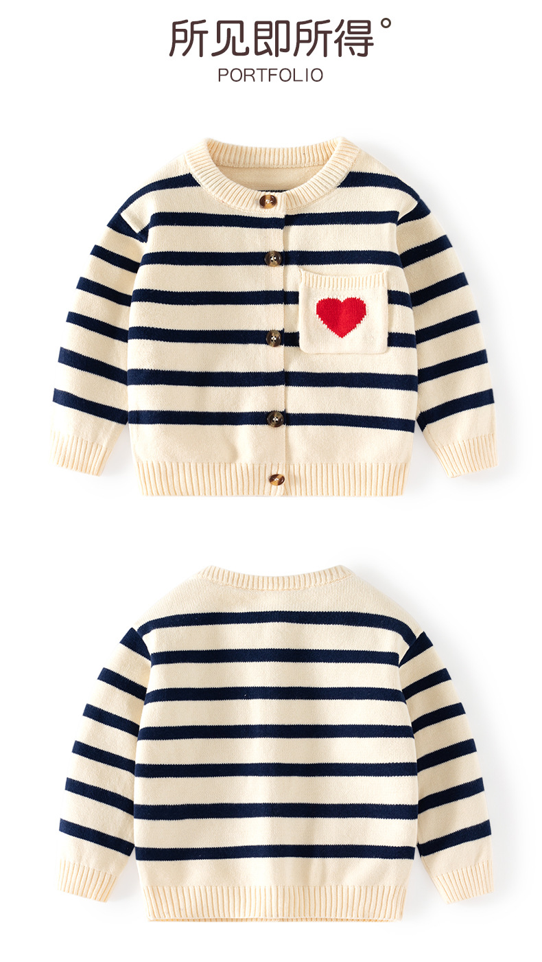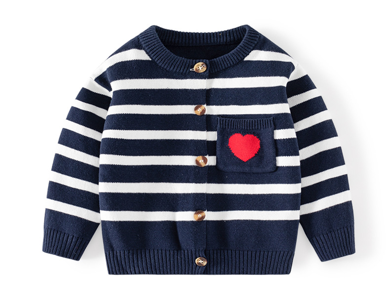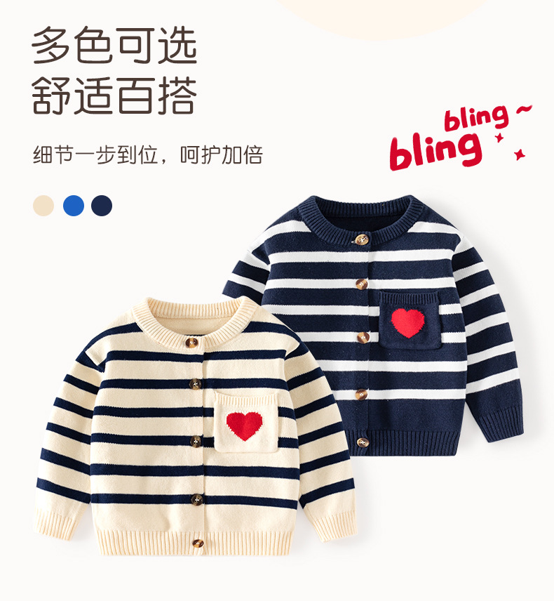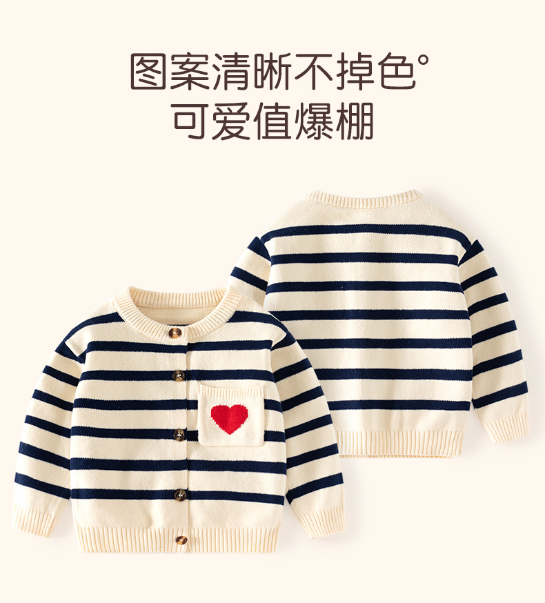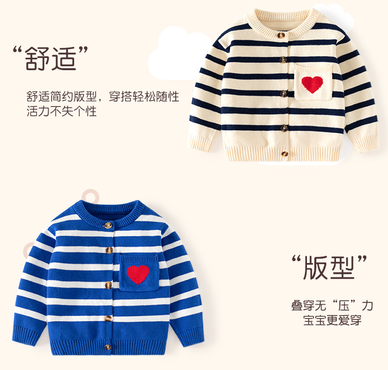 小爱心条纹婴儿毛衣A类精梳棉针织儿童毛衣开衫秋冬婴儿开衫毛衣