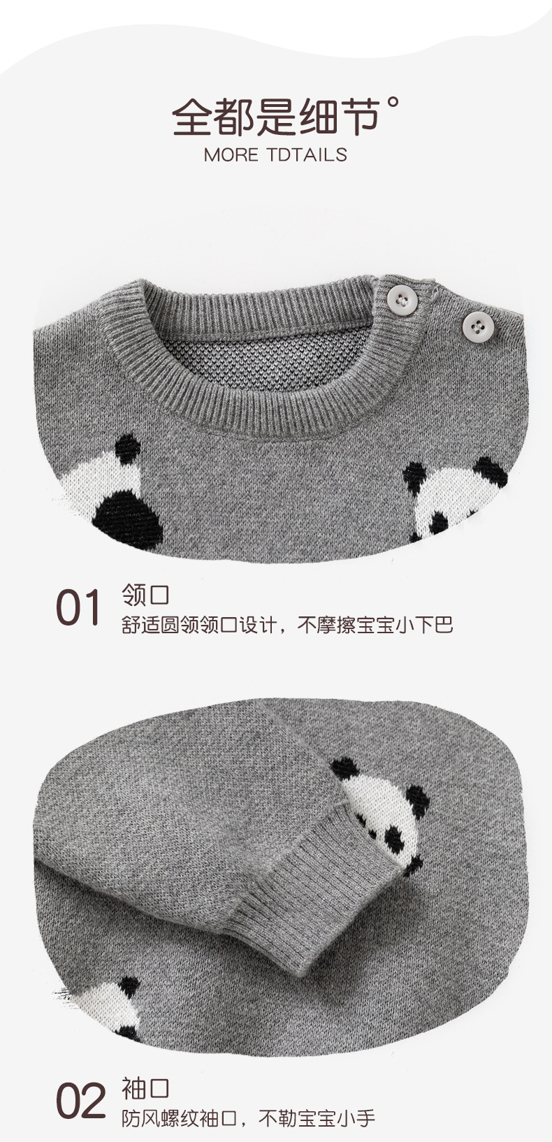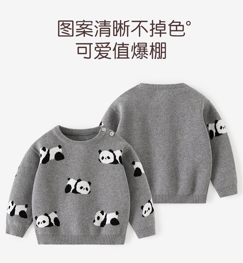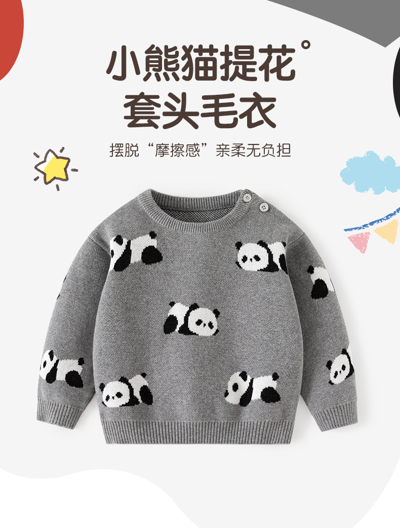 熊猫趴趴提花加厚针织儿童毛衣秋冬纯棉A类婴儿毛衣加厚儿童上衣