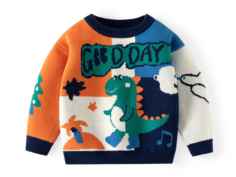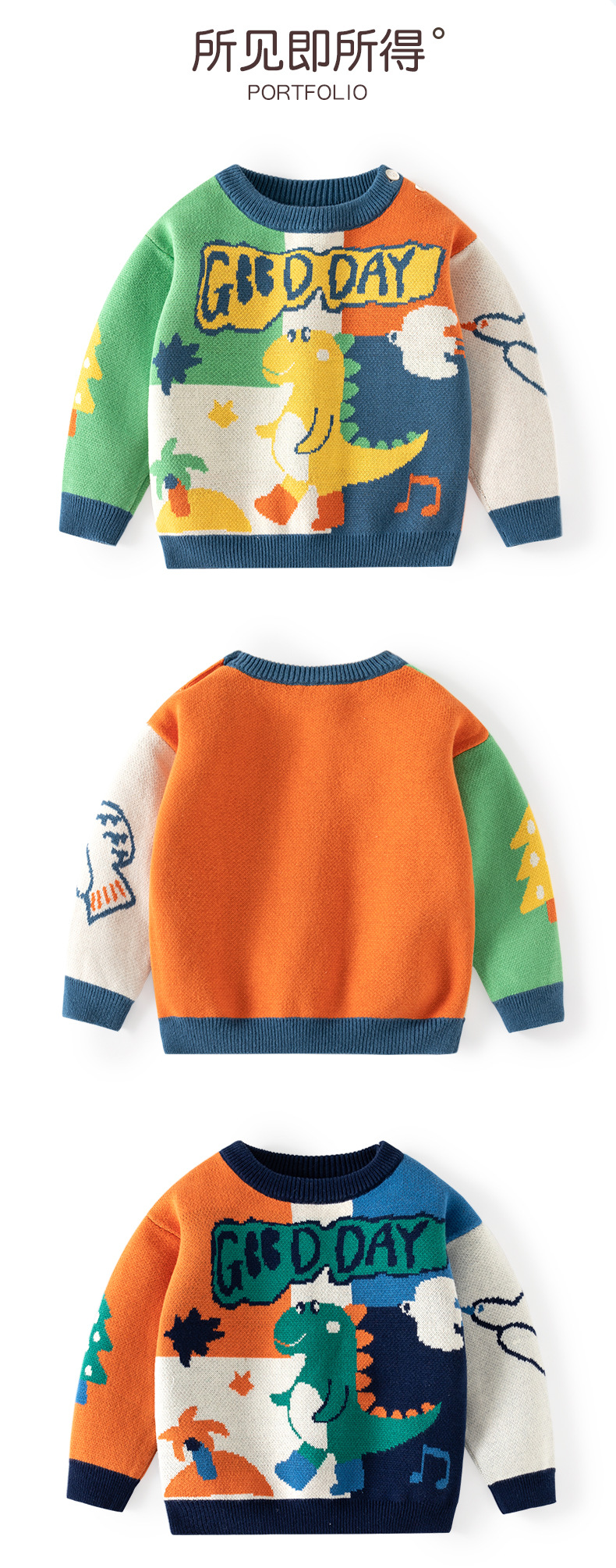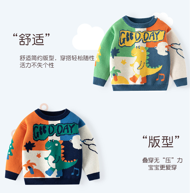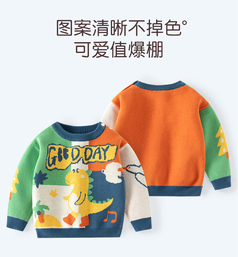 芝麻底卡通小恐龙A类婴儿毛衣秋冬纯棉针织儿童毛衣韩版男童毛衣