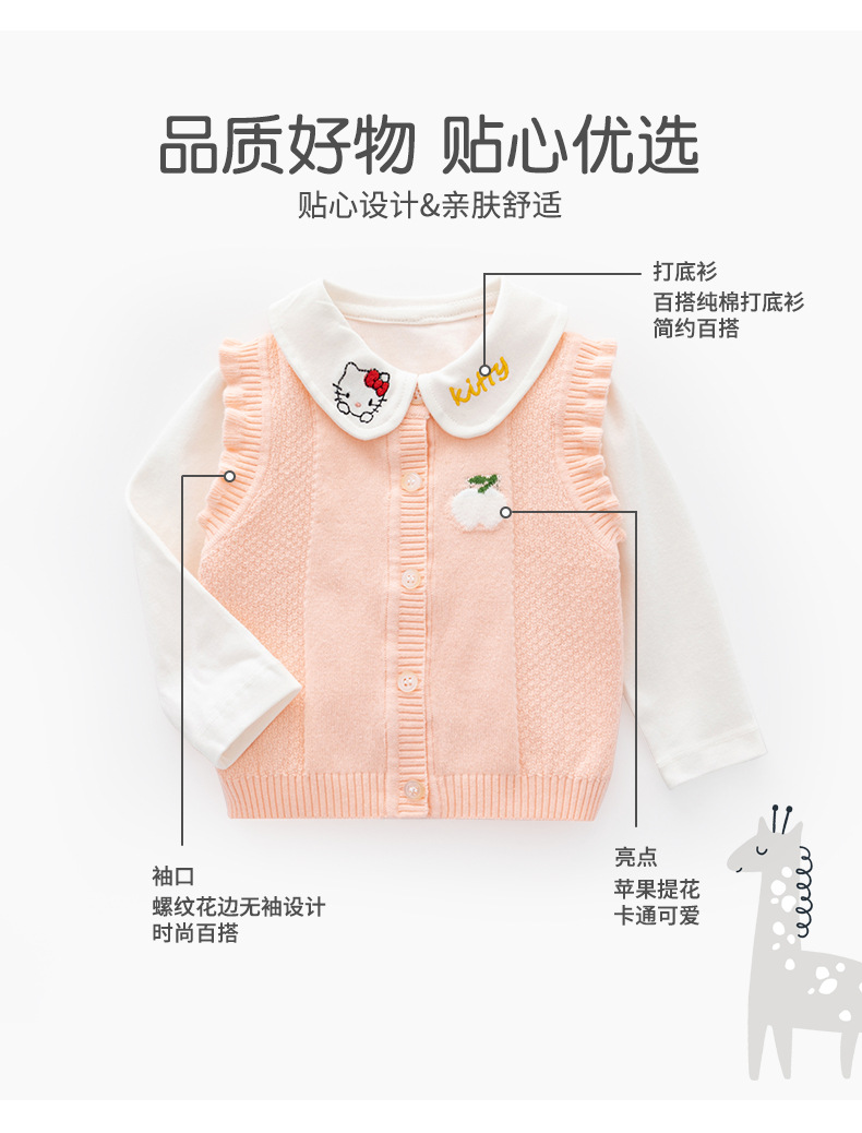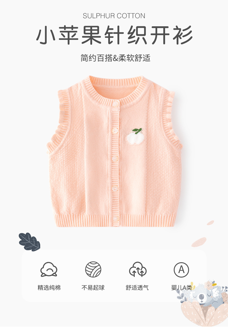 新款A类女童马甲毛衣春秋款纯色简约花边袖婴儿马甲开衫宝宝马甲