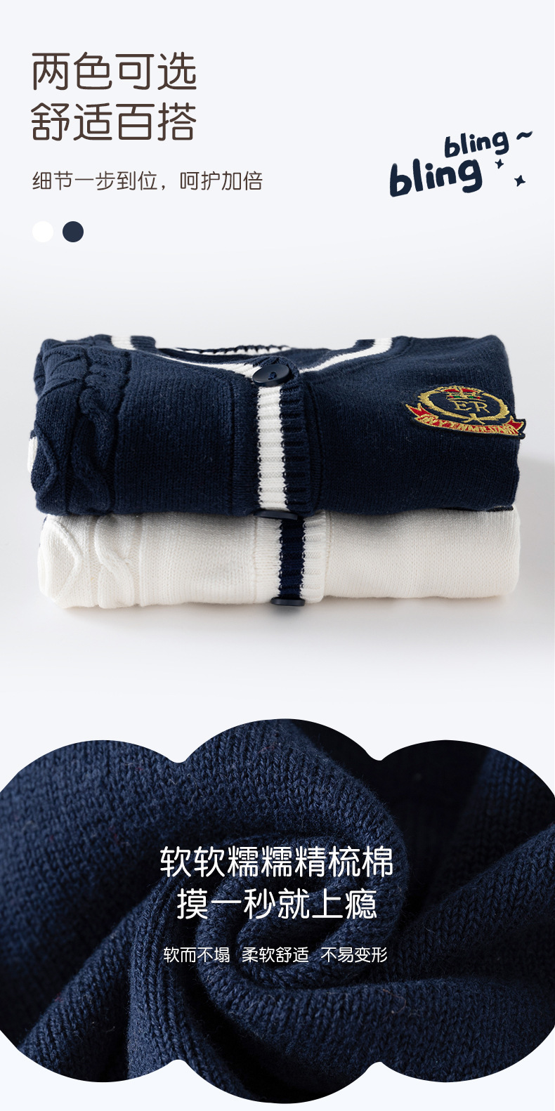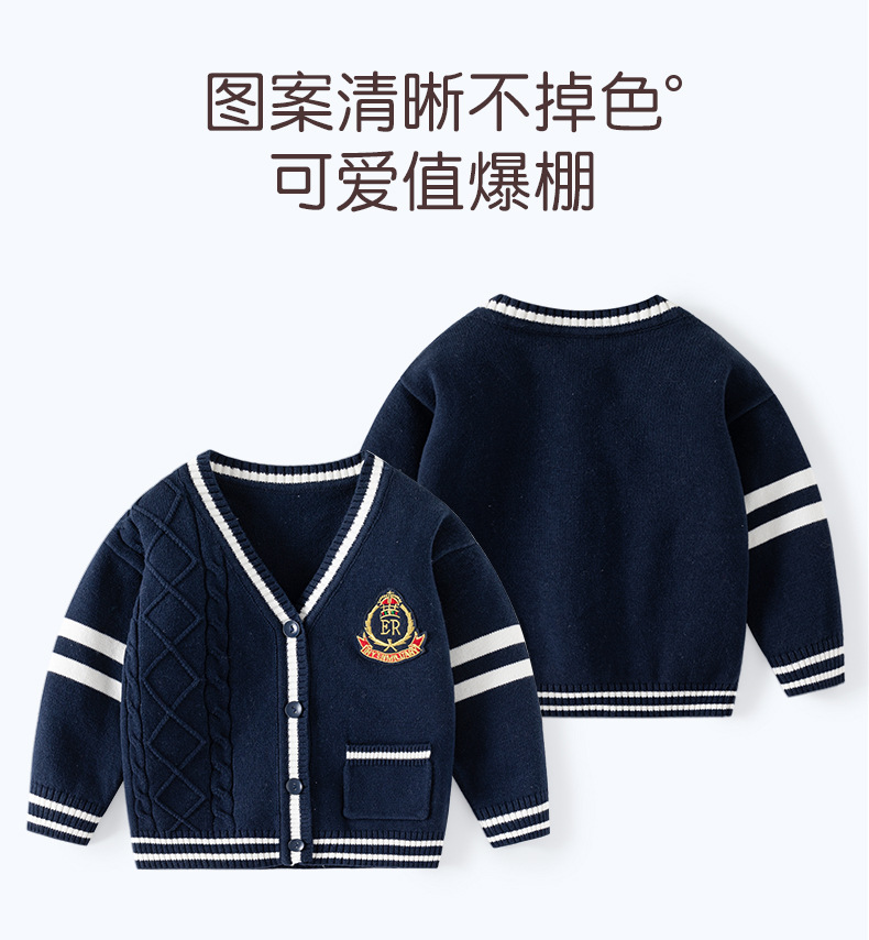 英伦学院风V领针织儿童外套秋冬柔软针织婴儿开衫A类针织儿童毛衣