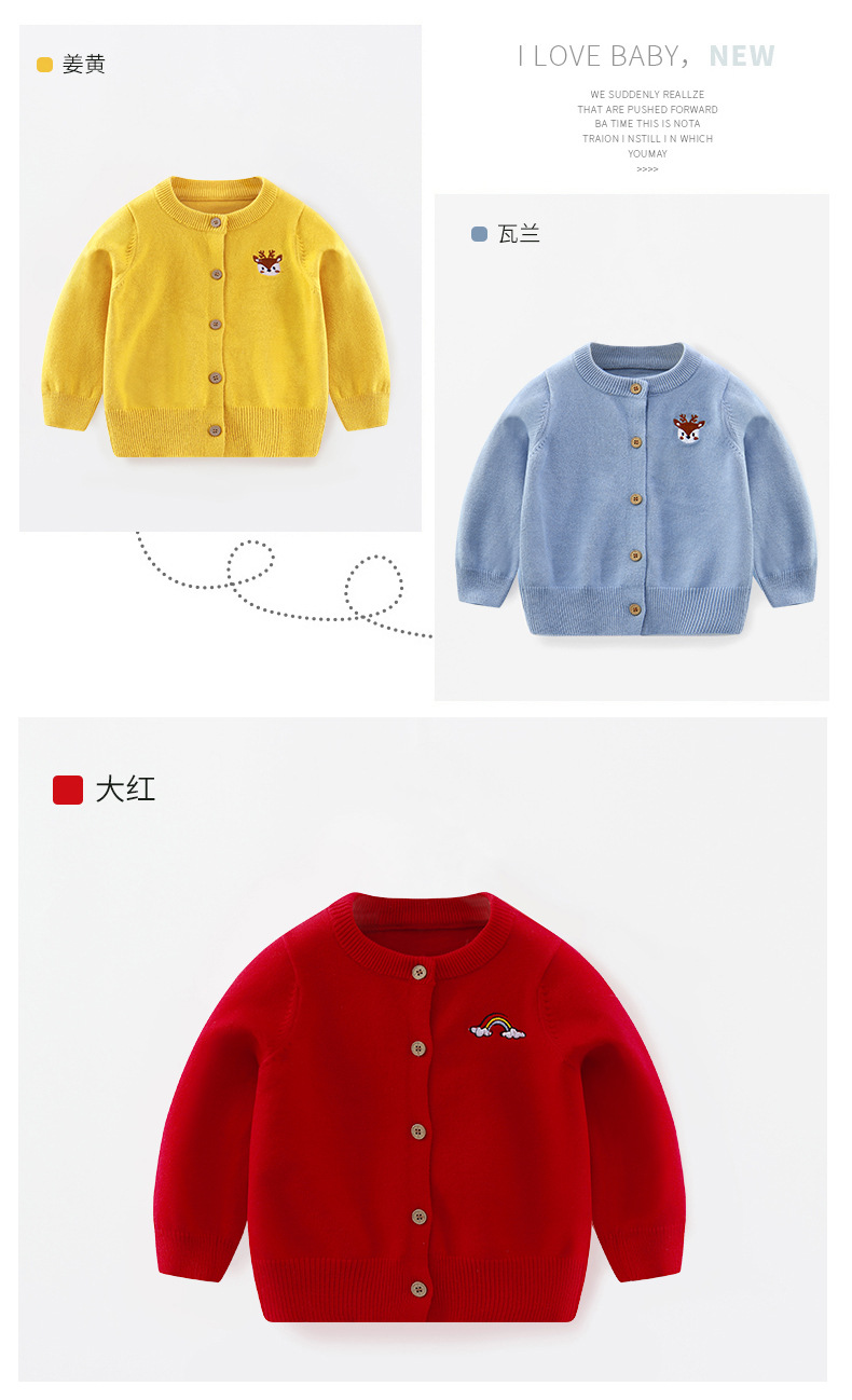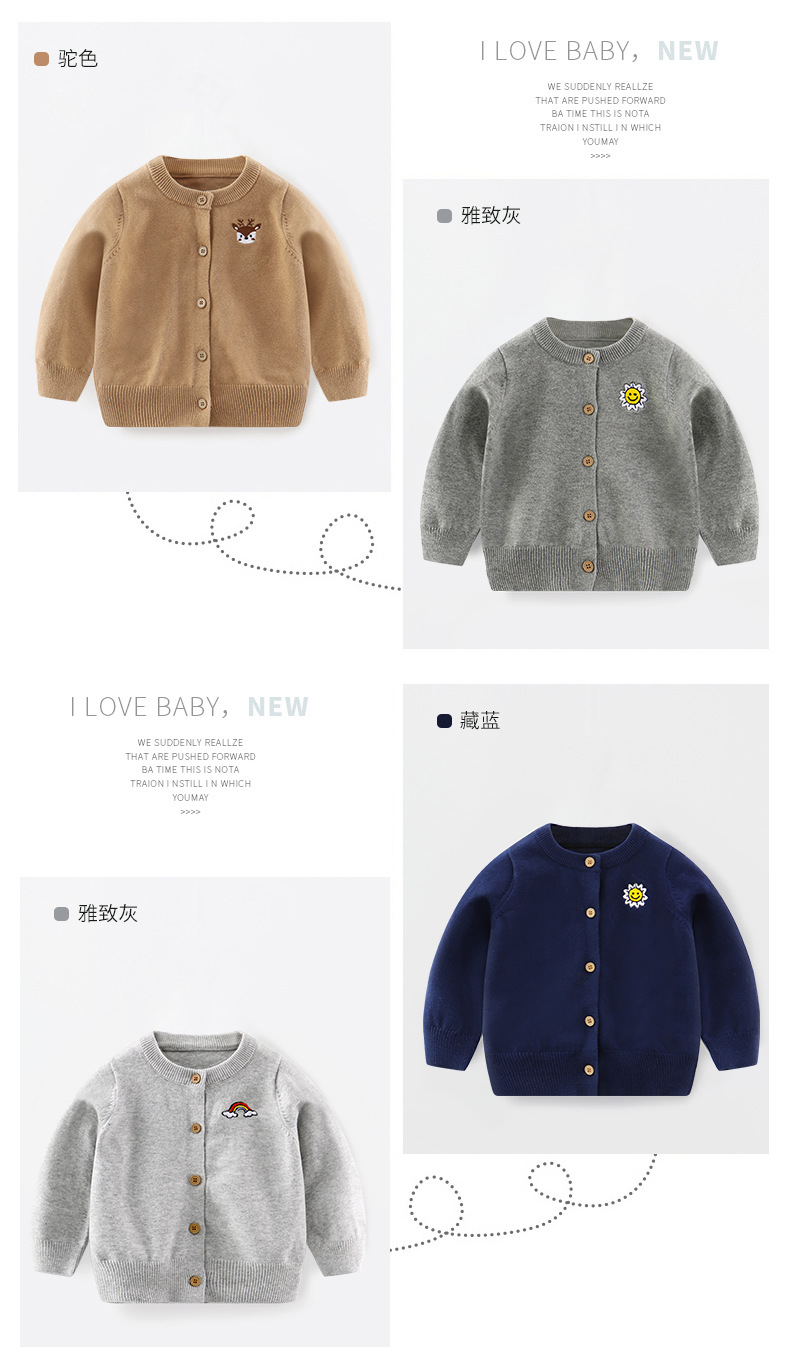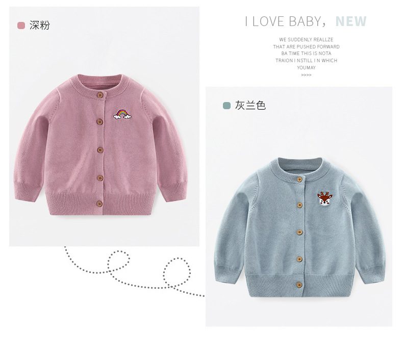 柔软ins风简约儿童针织毛衣秋冬婴儿针织开衫纯色A类婴儿毛衣开衫