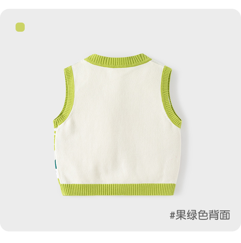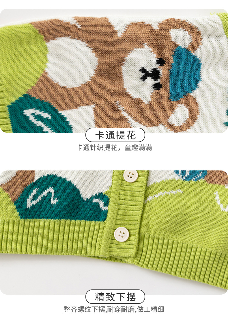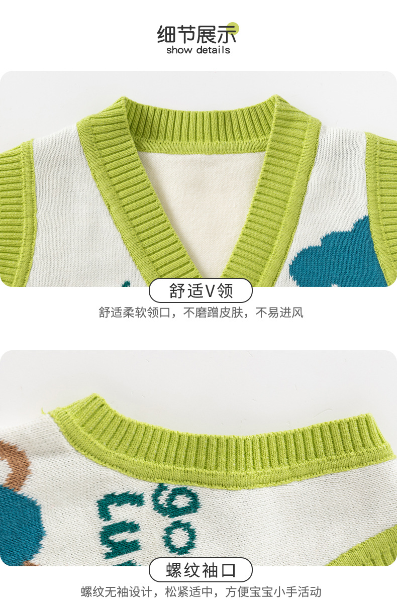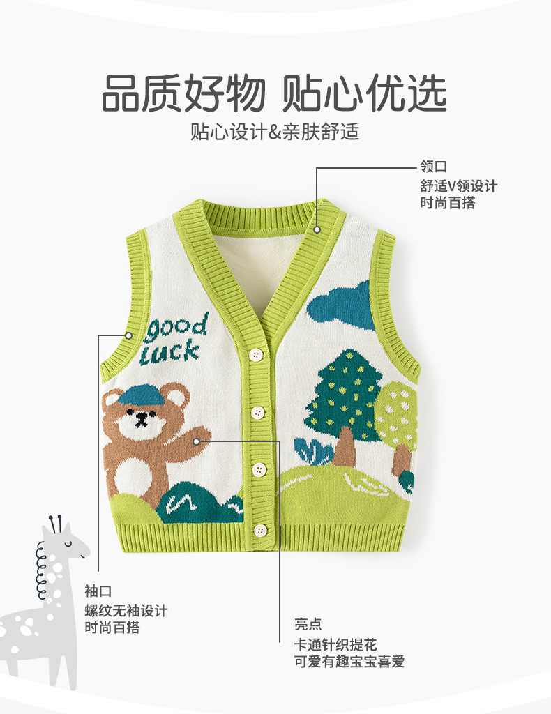 幸运小熊针织A类婴儿马甲秋季外穿婴儿开衫马甲软糯提花儿童马甲