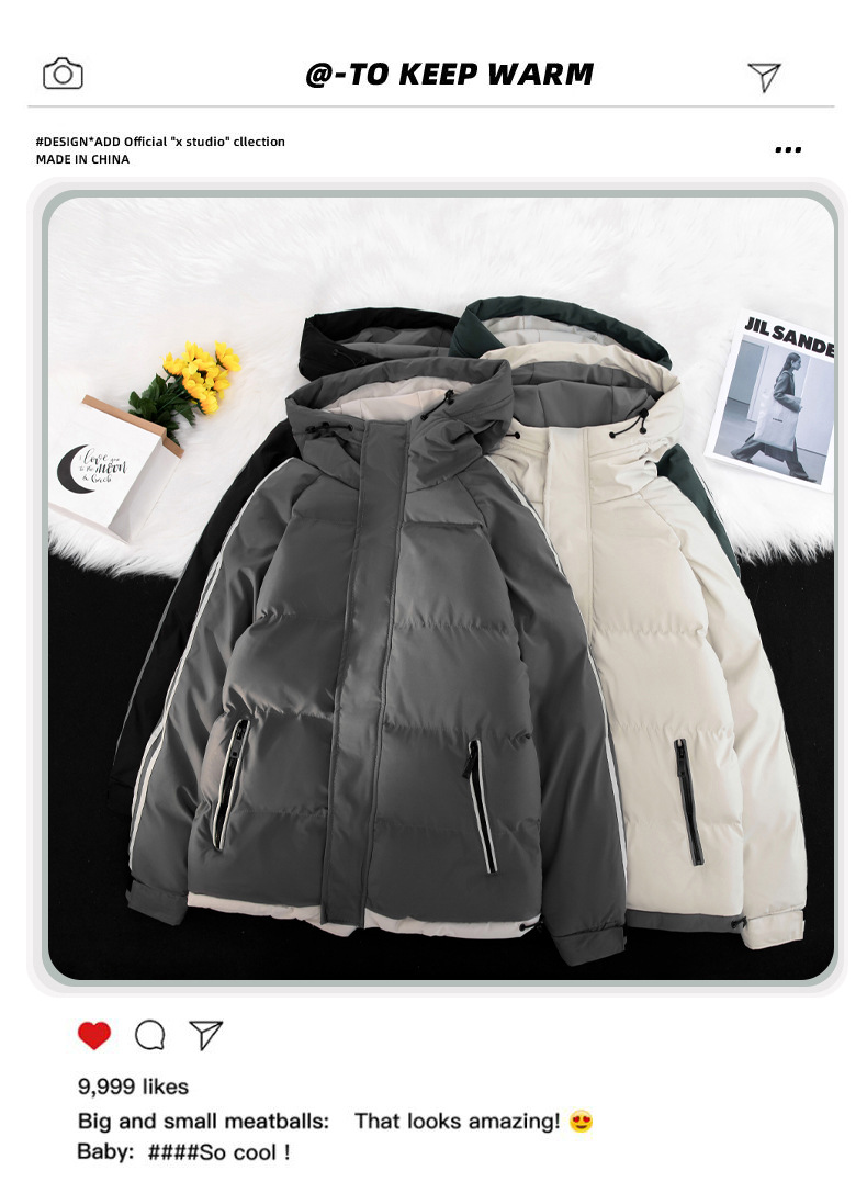 棉服男连帽外套保暖加厚防寒港风百搭棉袄冬款外套羽绒服棉衣男士