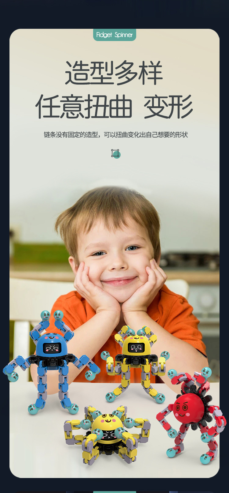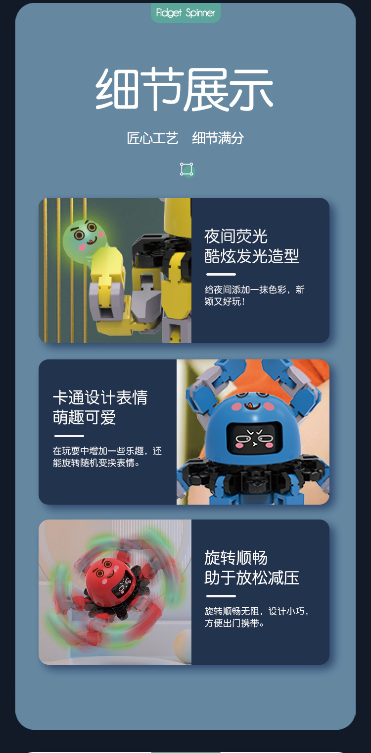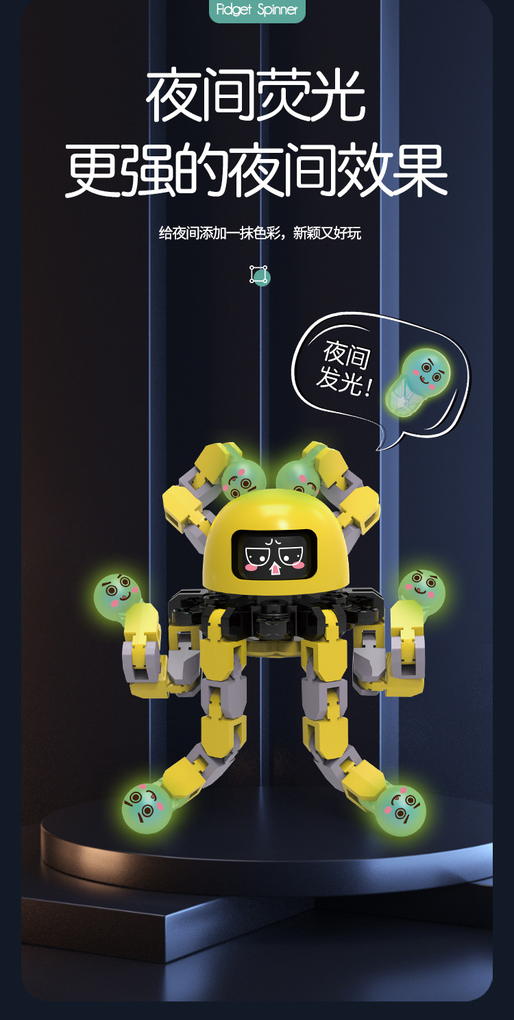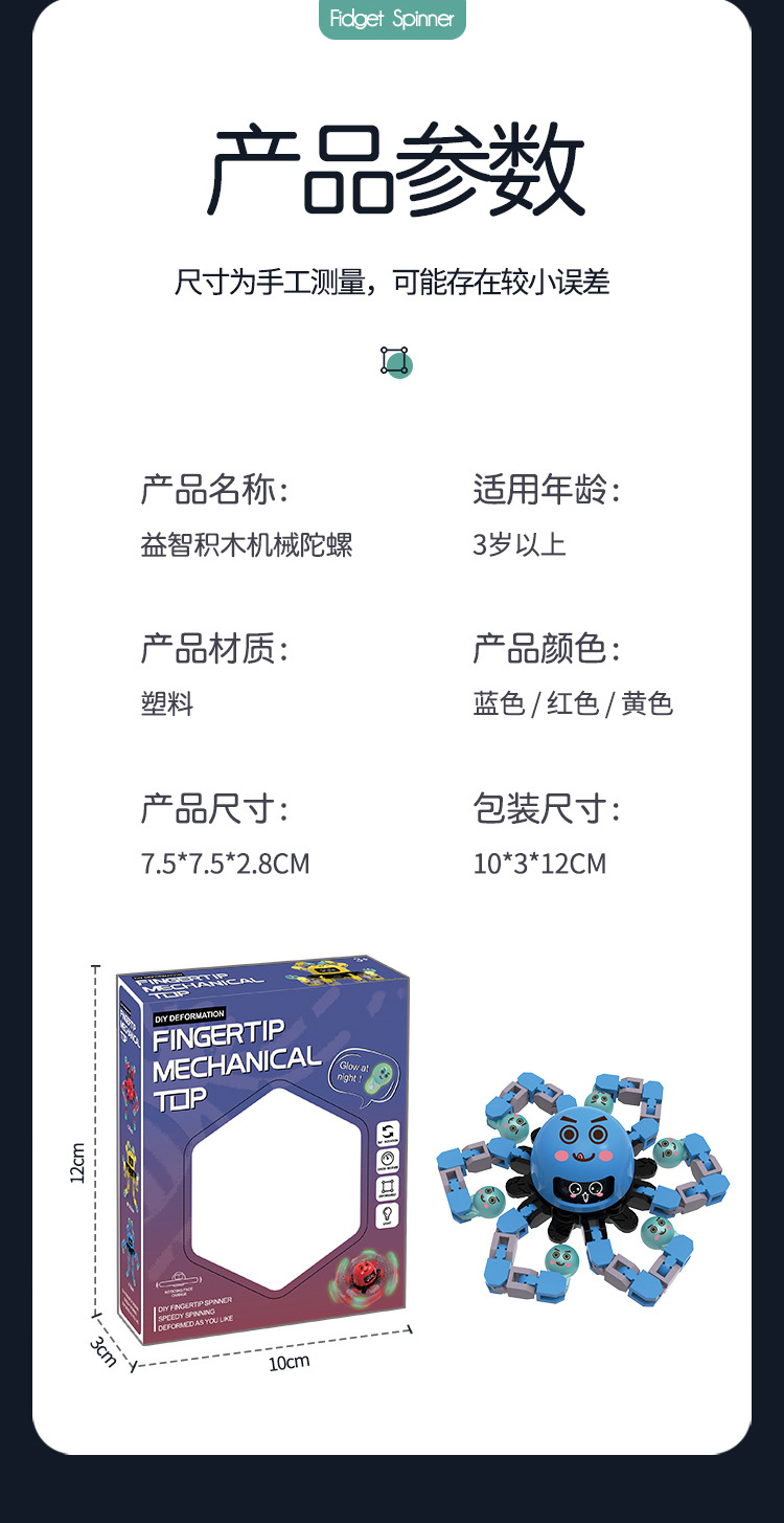 跨境变形机器人解压玩具儿童益智积木百变发光旋转指尖机械陀螺