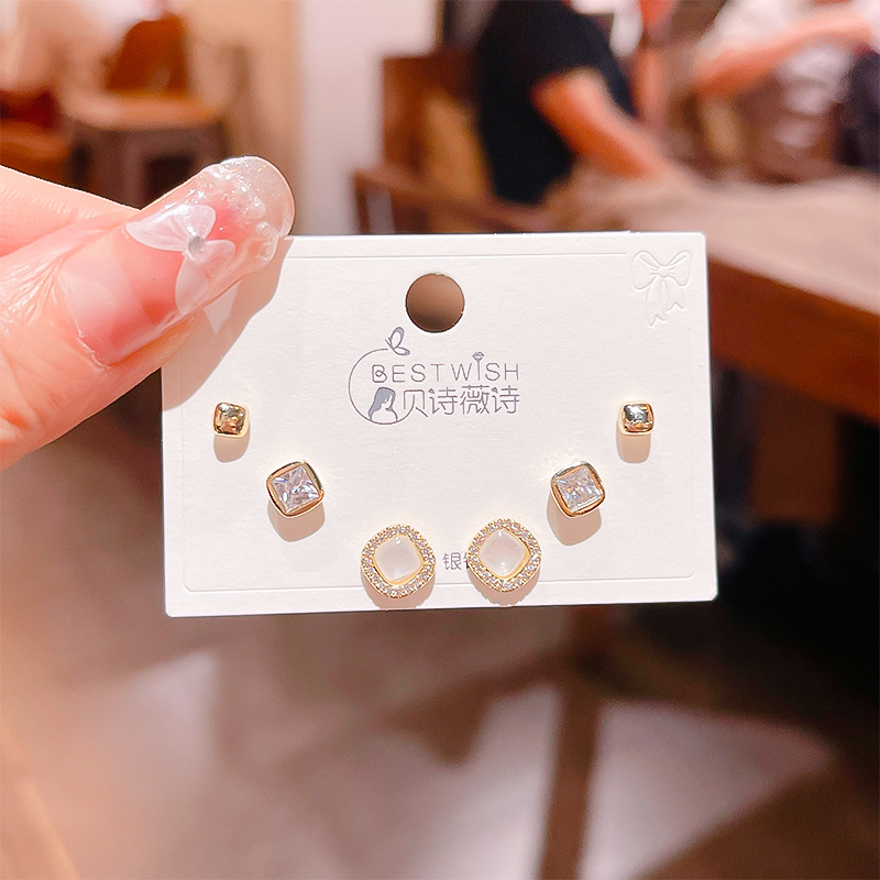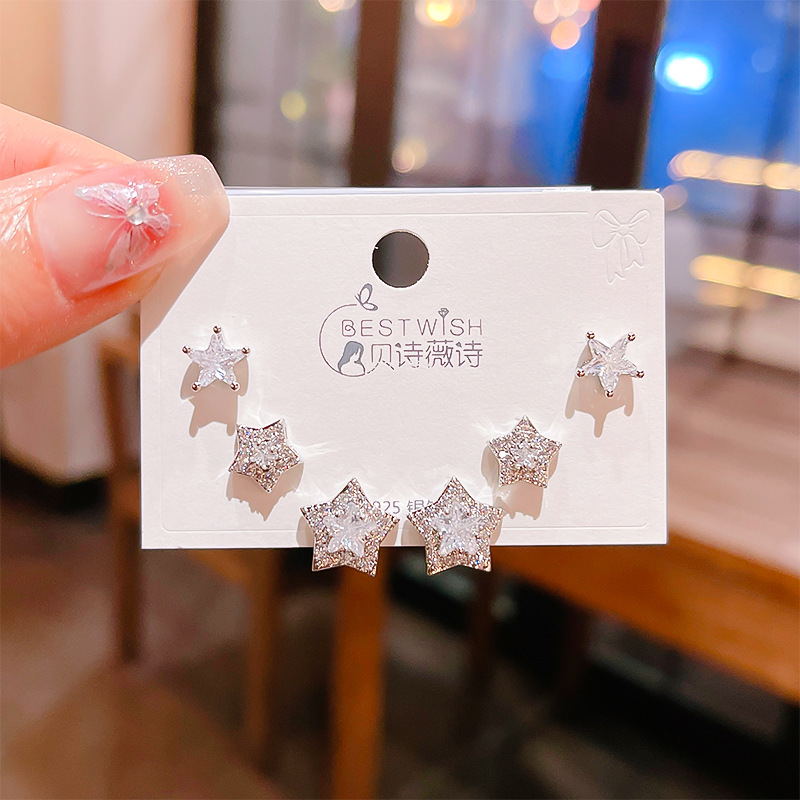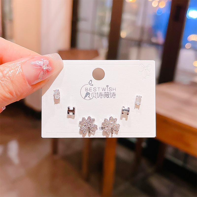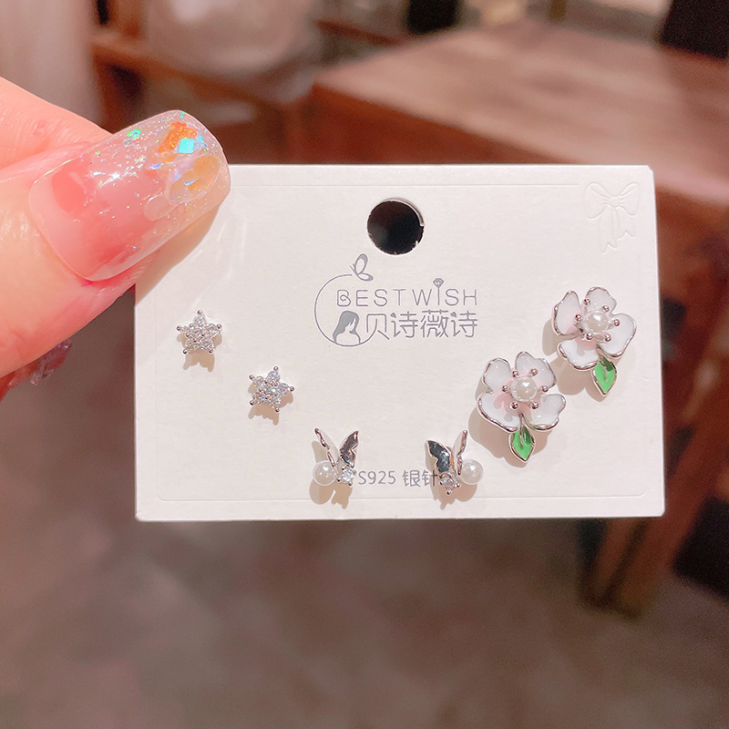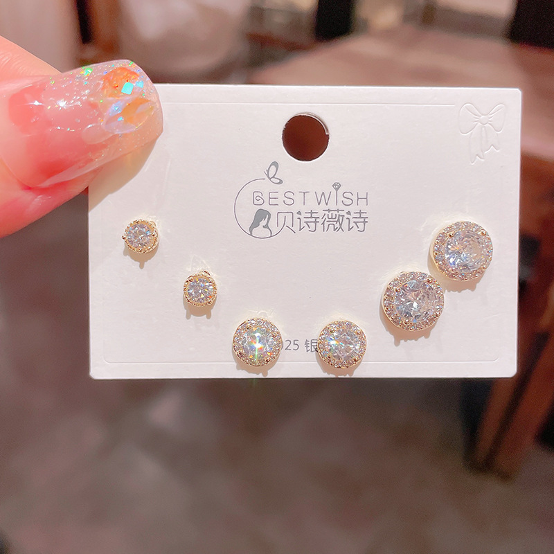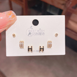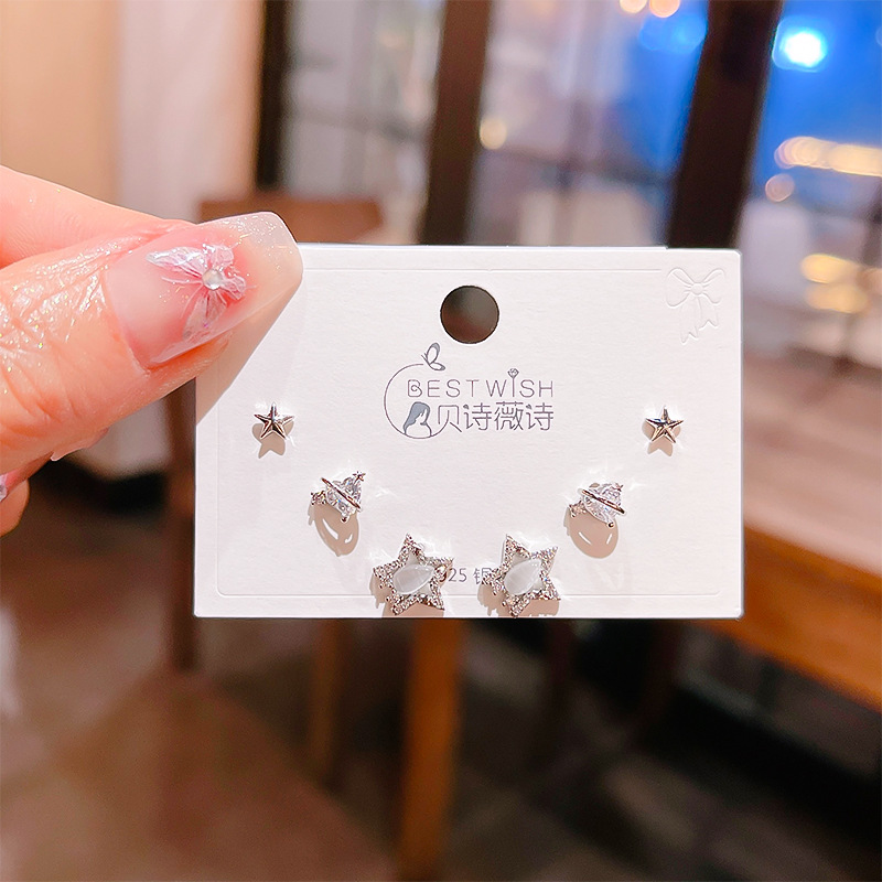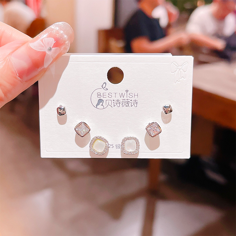 高品质感s925纯银针6件套装小耳钉 女韩版简约气质三对耳钉批发