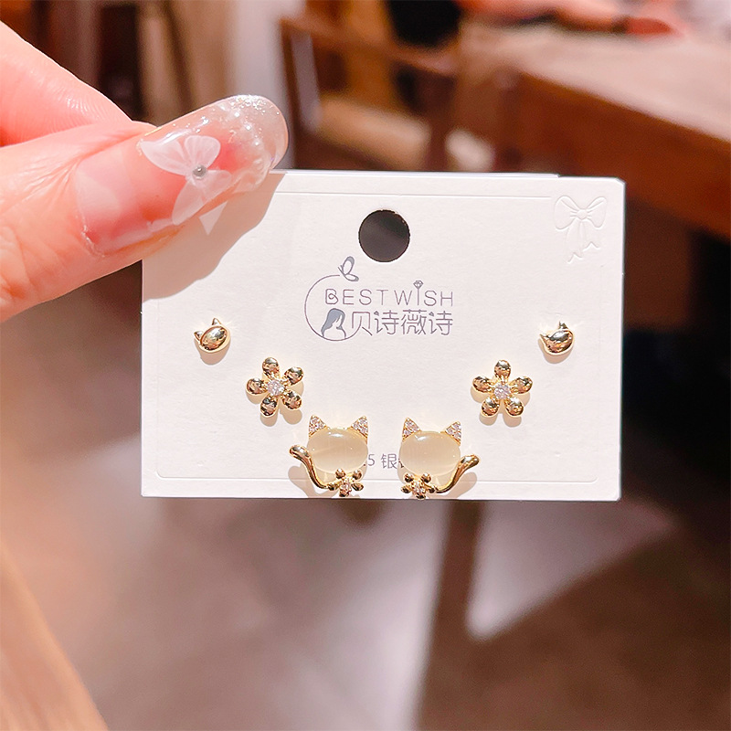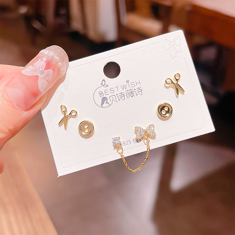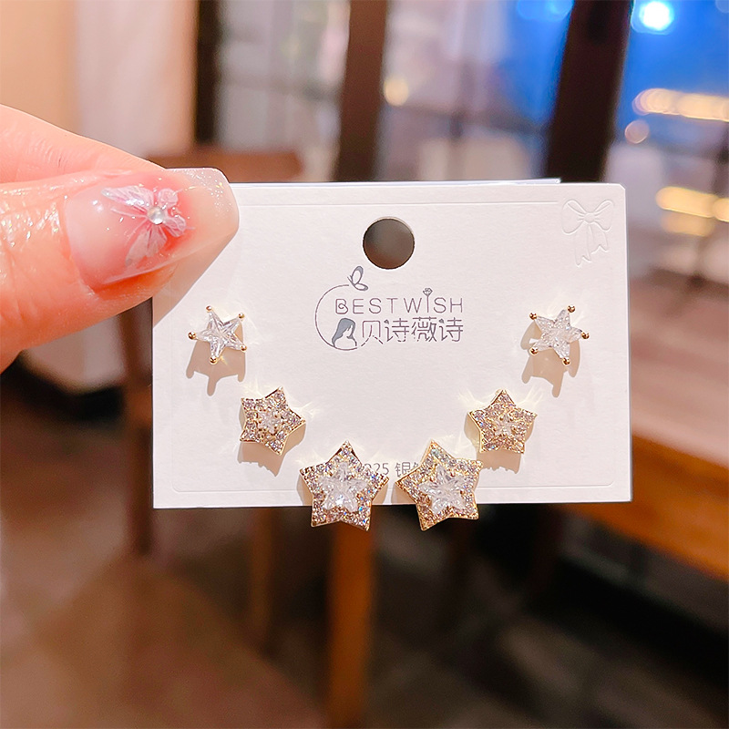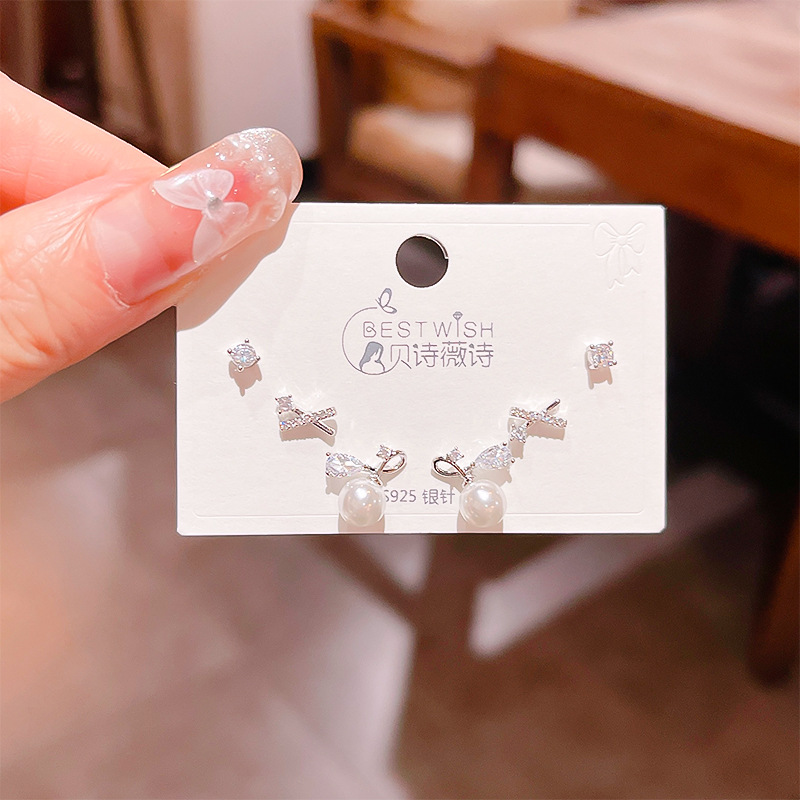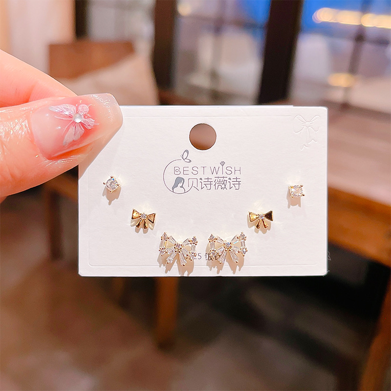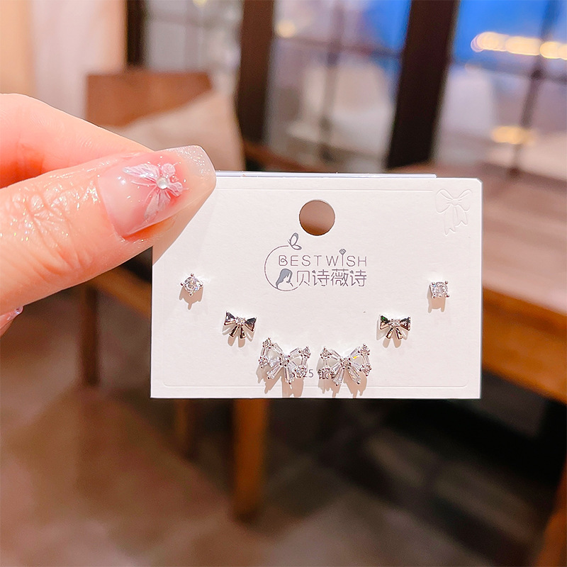 高品质感s925纯银针6件套装小耳钉 女韩版简约气质三对耳钉批发