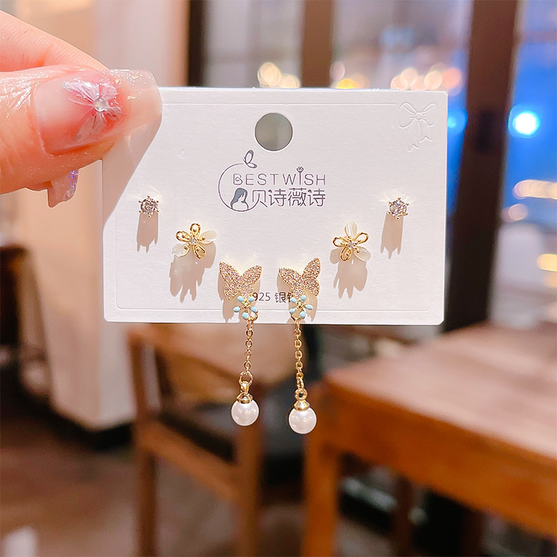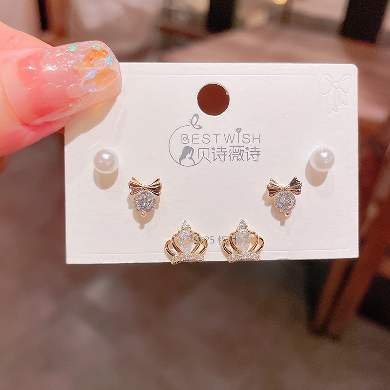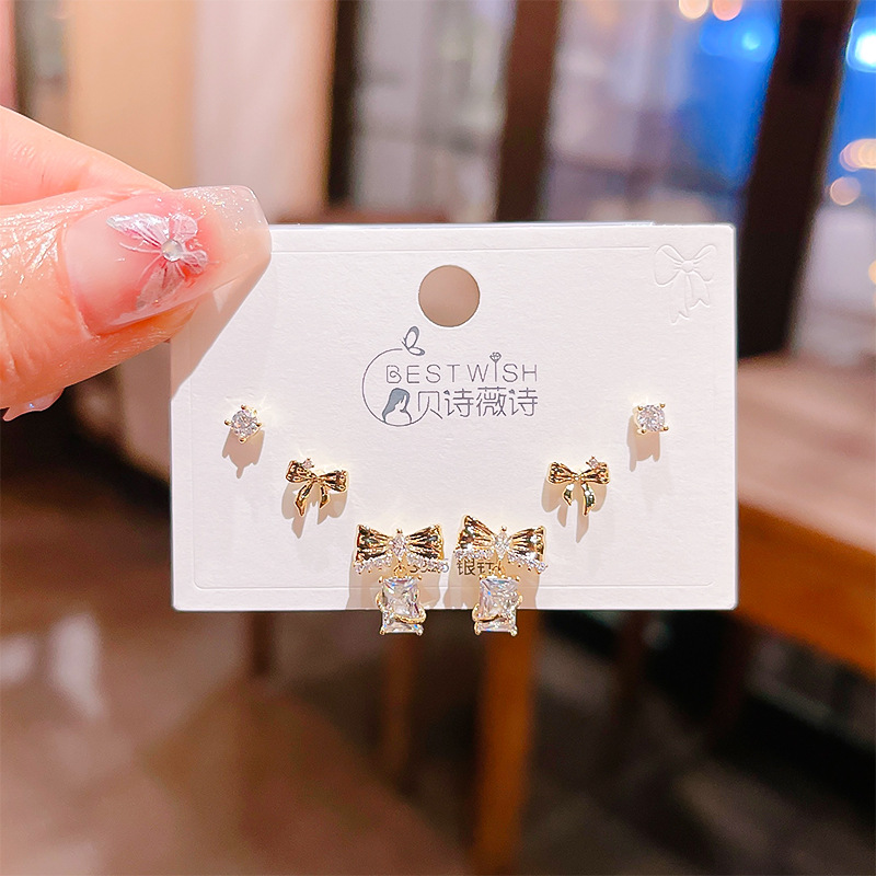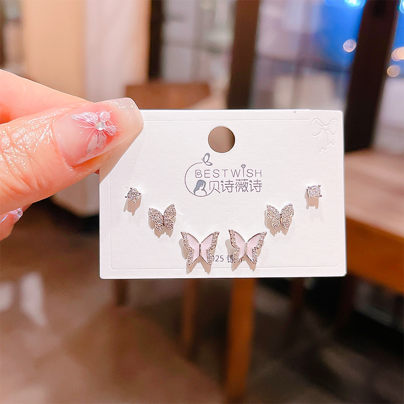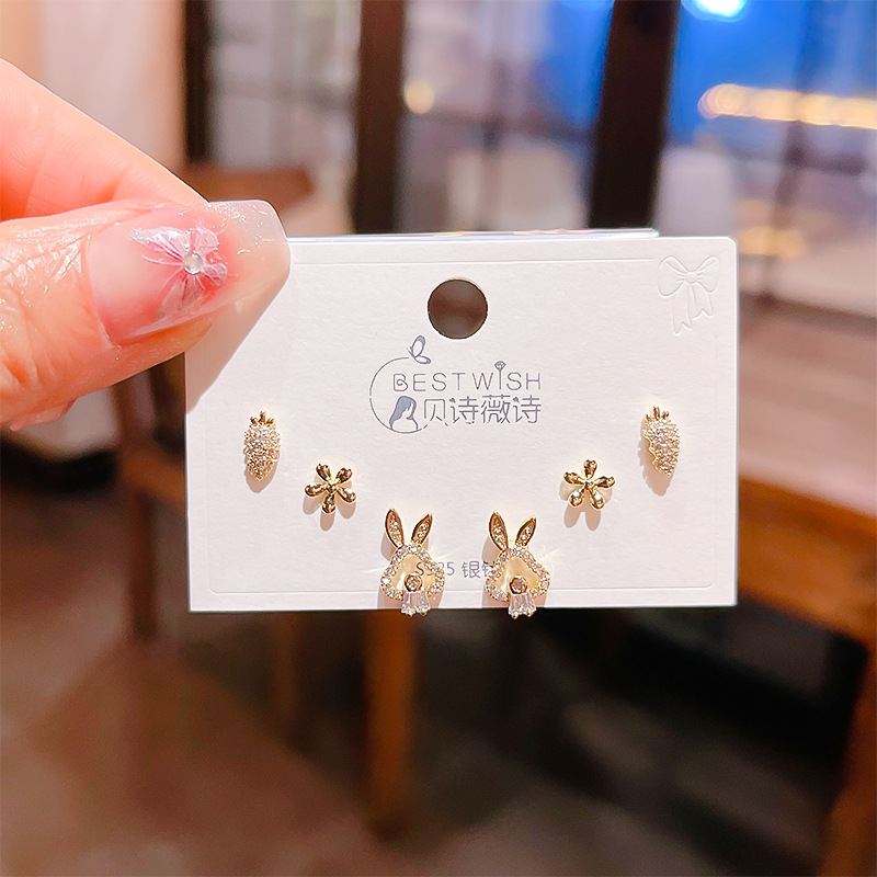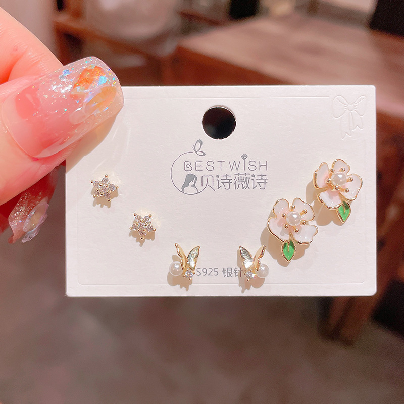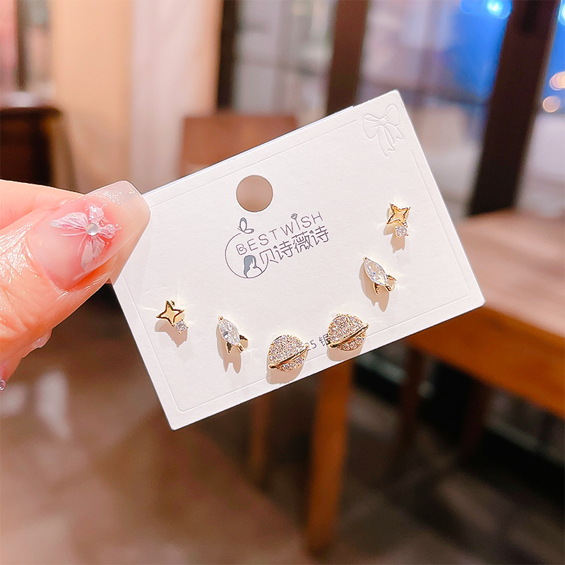 高品质感s925纯银针6件套装小耳钉 女韩版简约气质三对耳钉批发