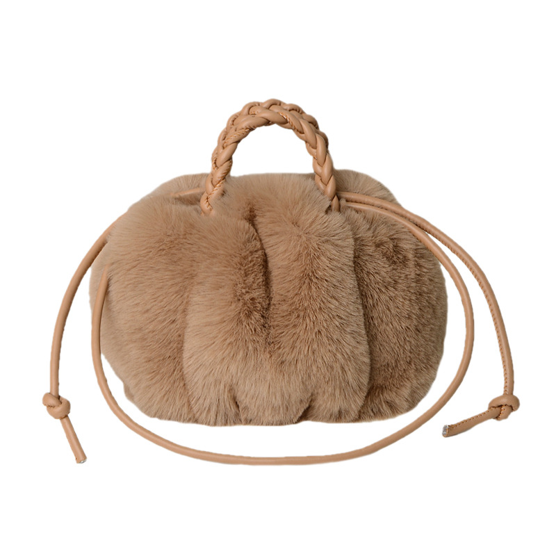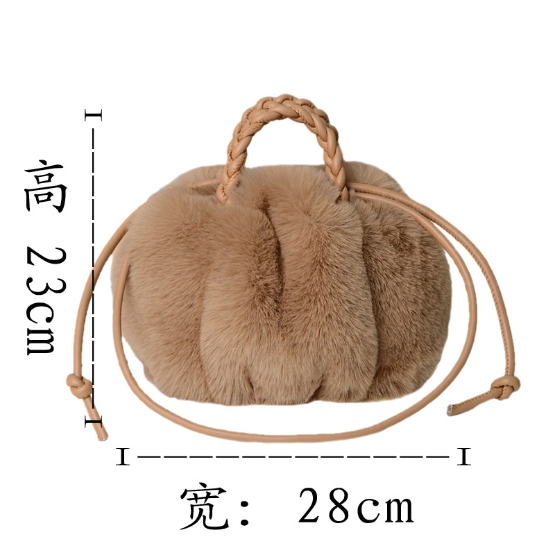 可爱南瓜毛绒包包高级质感编织肩带毛毛包秋冬新款气质百搭女包