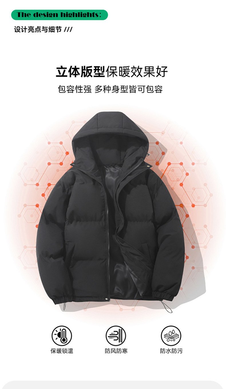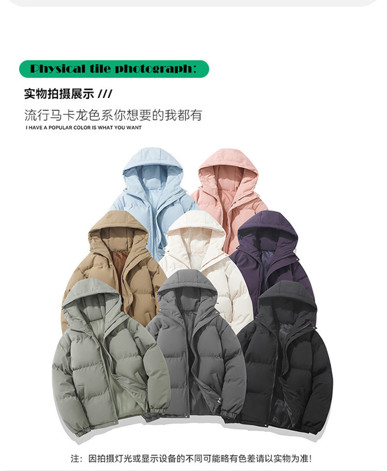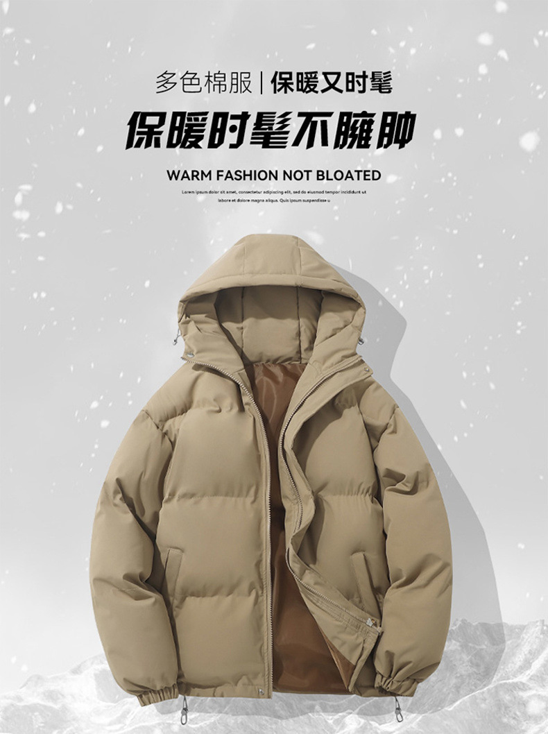羽绒棉服男跨境情侣棉袄连帽棉衣户外面包服加厚保暖纯色大码外套
