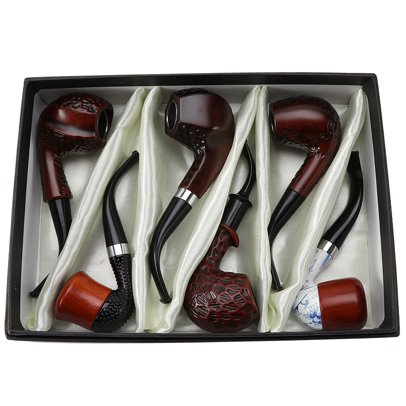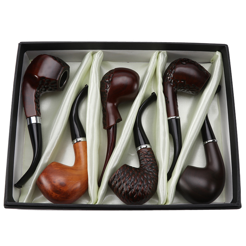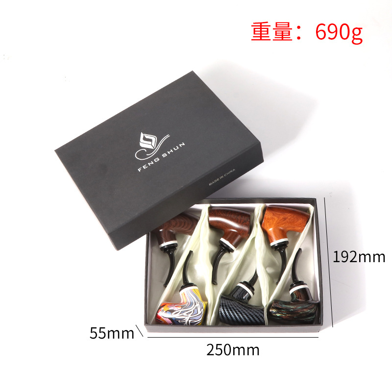 烟具现货热卖六件套装树脂烟斗 送礼佳品礼盒装仿实木过滤烟斗