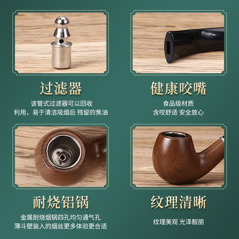 厂家直销树脂烟斗仿烟枪木质铁质斗锅木纹烟具批发烟丝木制