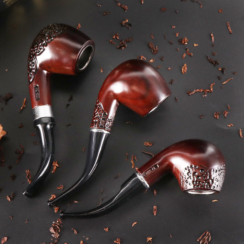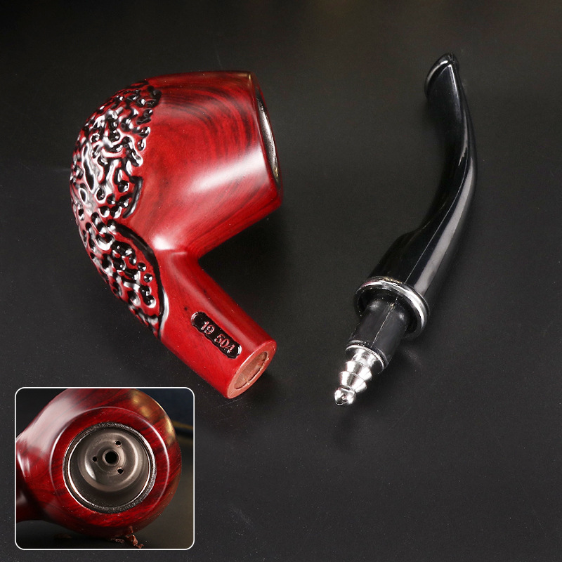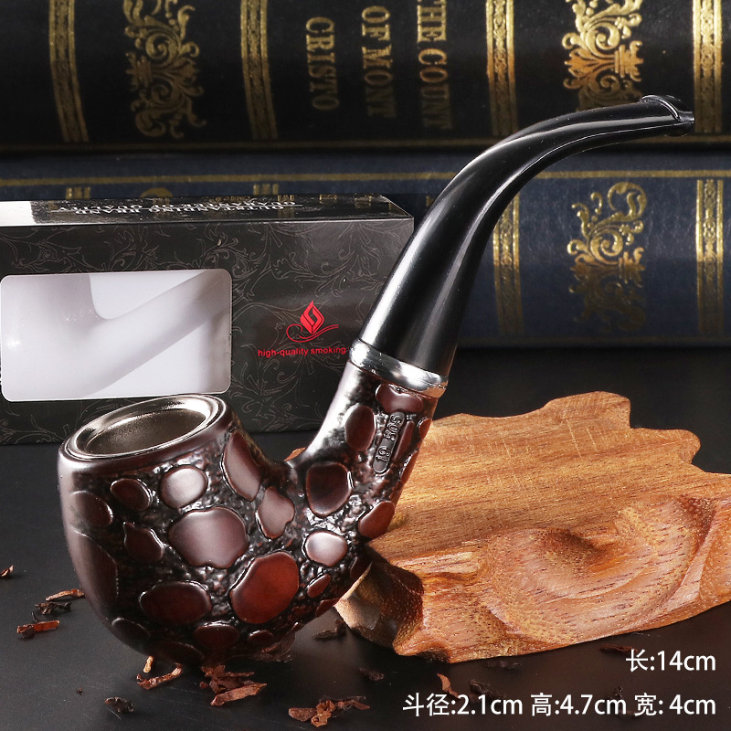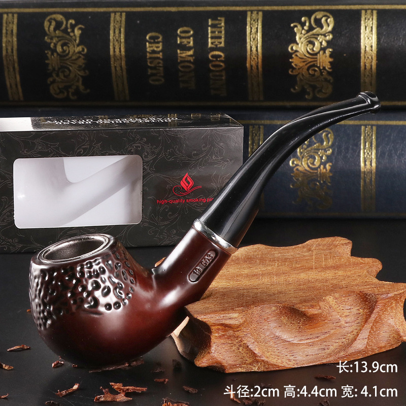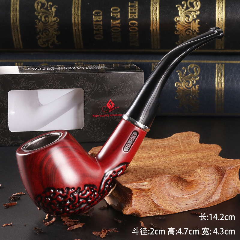 新品供应仿实木树脂雕花烟斗烟具现货可烟枪代发弯柄可拆式过滤