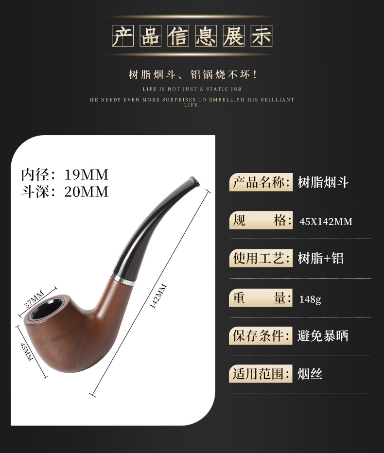 热销树脂烟斗耐用胶木铁锅循环过滤可拆洗经典烟丝斗男士礼品