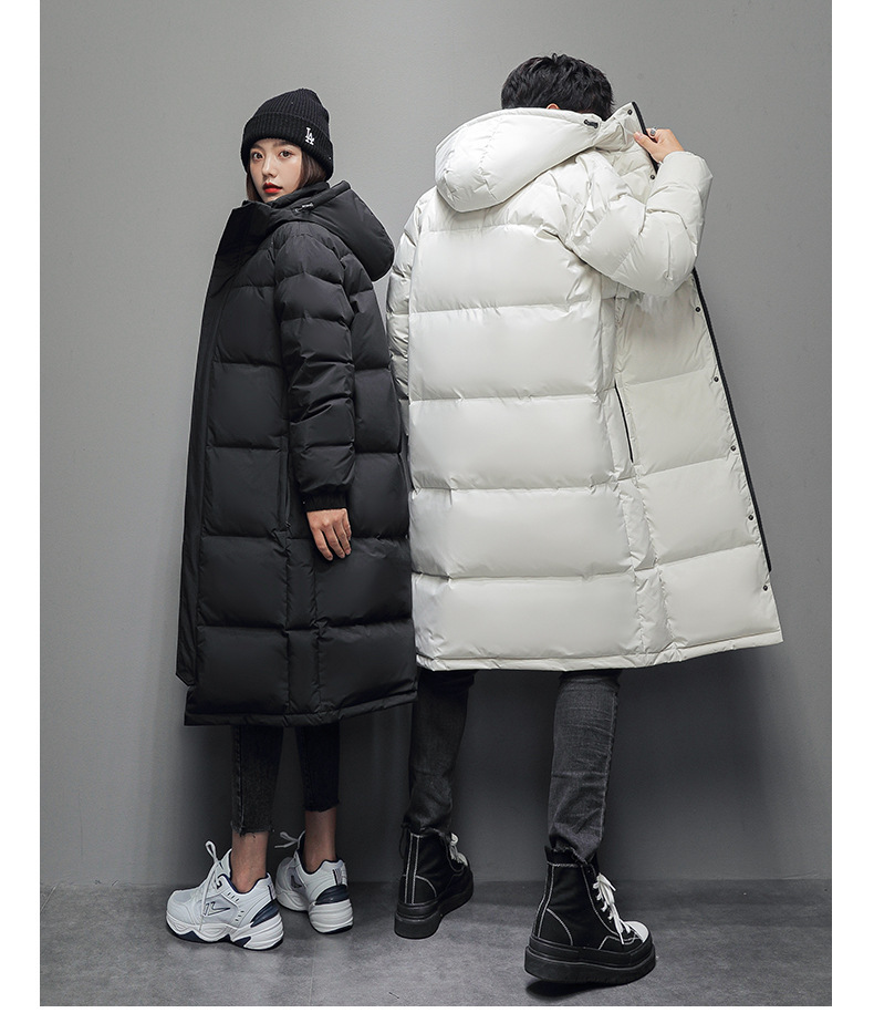 冬季新款羽绒服男女士长款过膝素板中戏校服加厚保暖情侣潮流外套