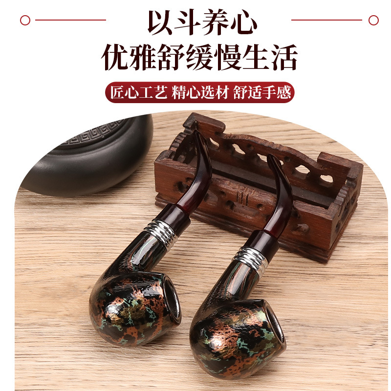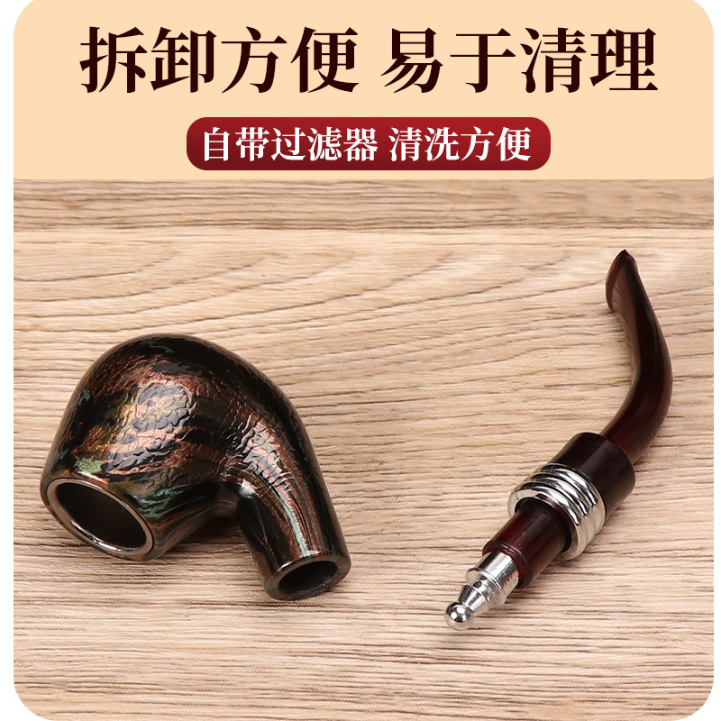 新款短蛇纹胶木个性创意烟丝专用树脂烟斗可拆卸弯式跨境专供烟具
