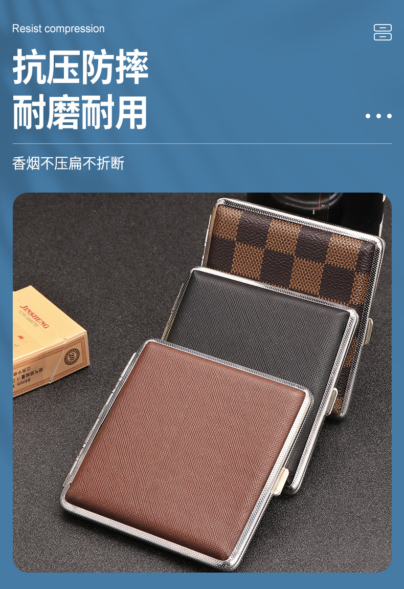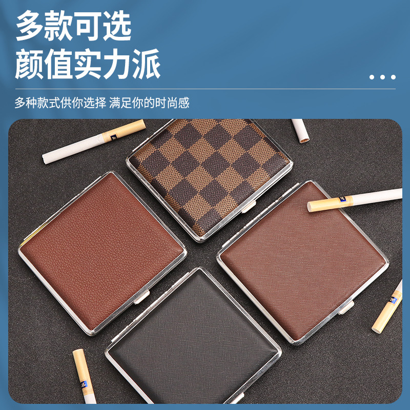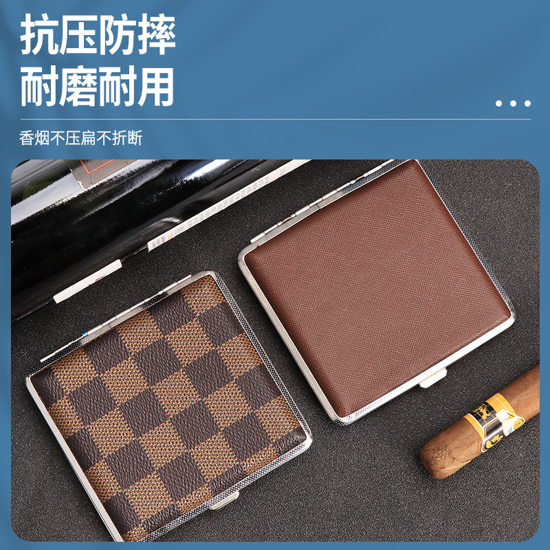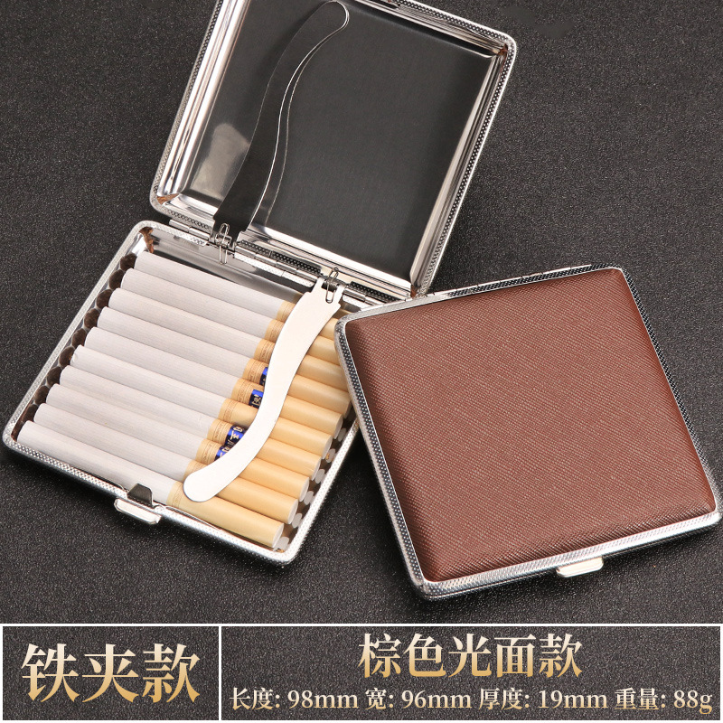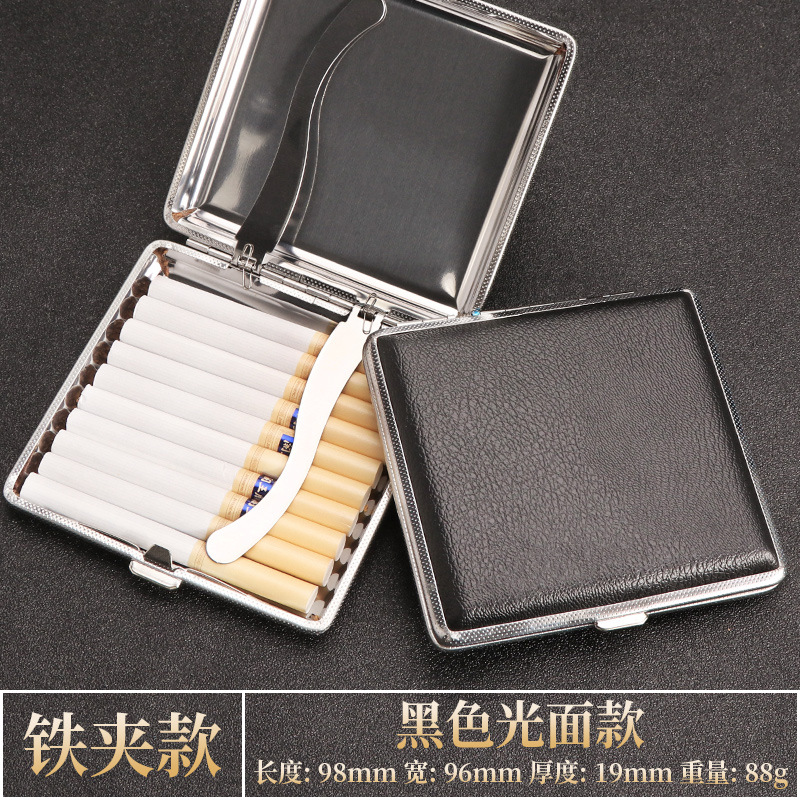 现货批发金属烟盒皮质铁夹烟盒20支装男士便携高档防压香烟收纳盒