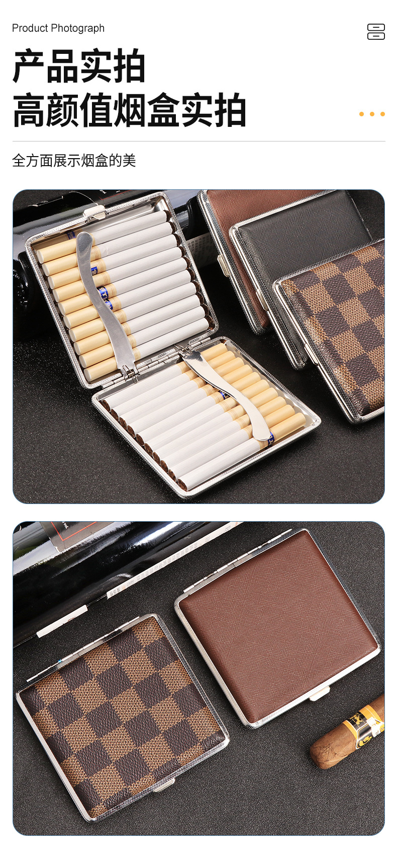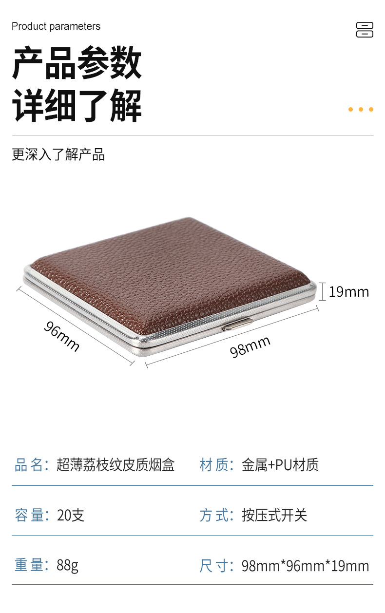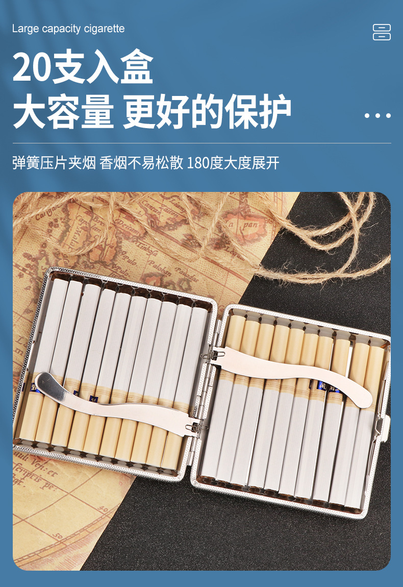 现货批发金属烟盒皮质铁夹烟盒20支装男士便携高档防压香烟收纳盒