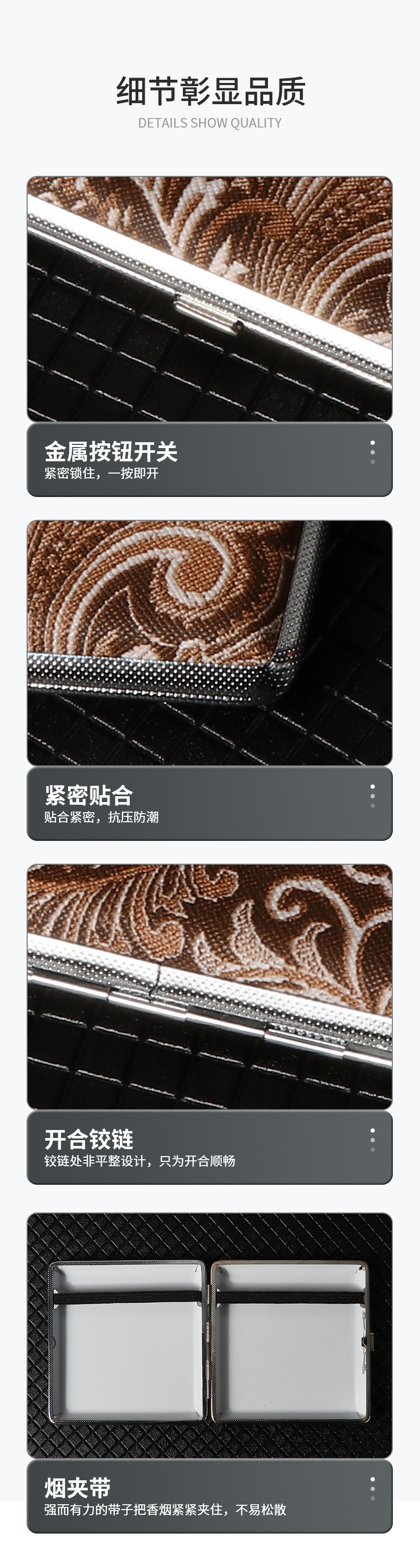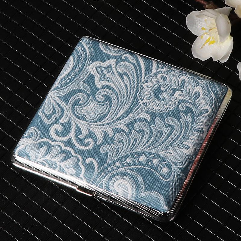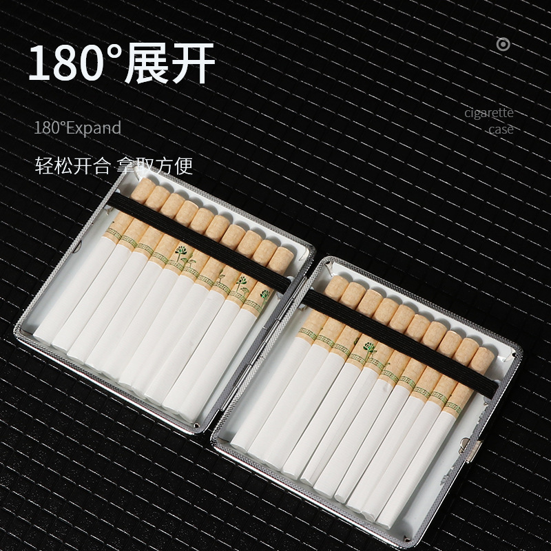 热销经典大理石纹皮筋款粗支20支装烟盒男士便携轻便型金属pu烟盒
