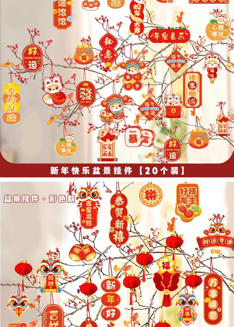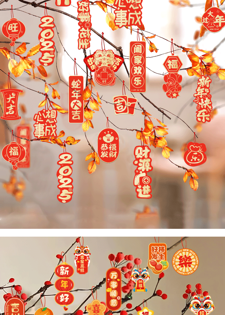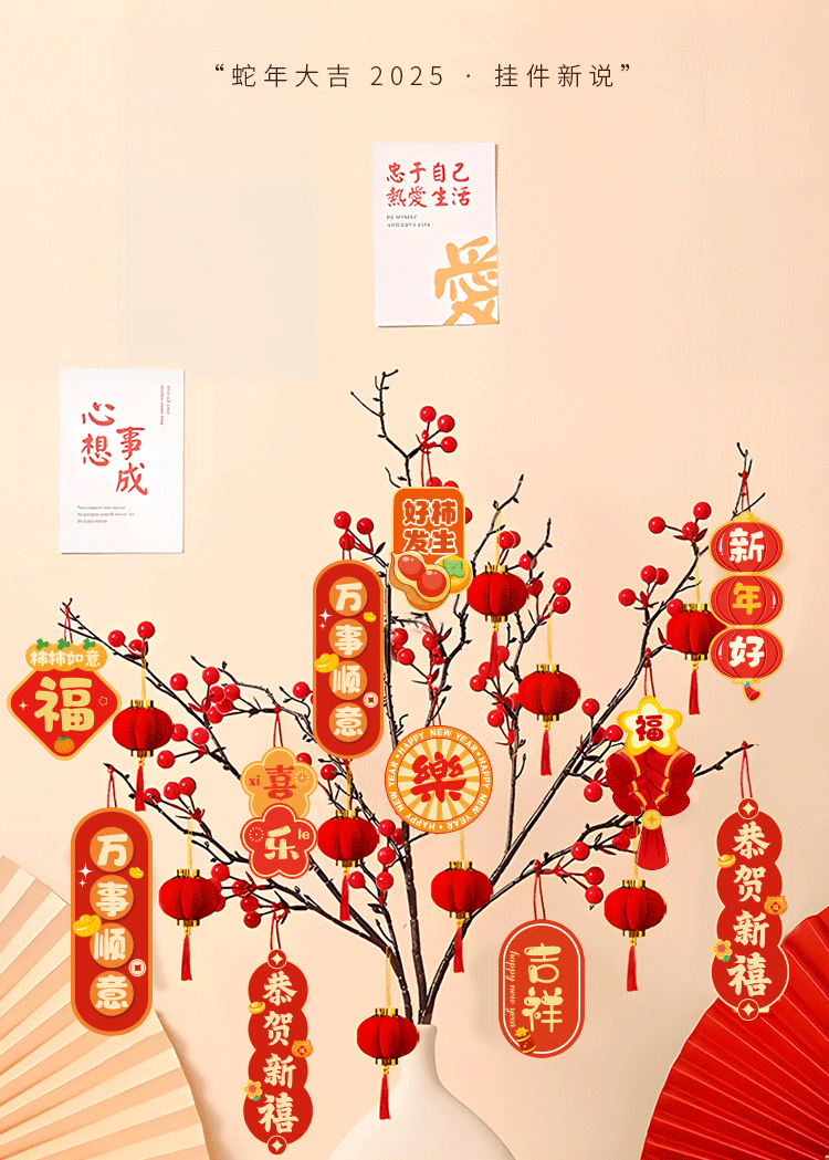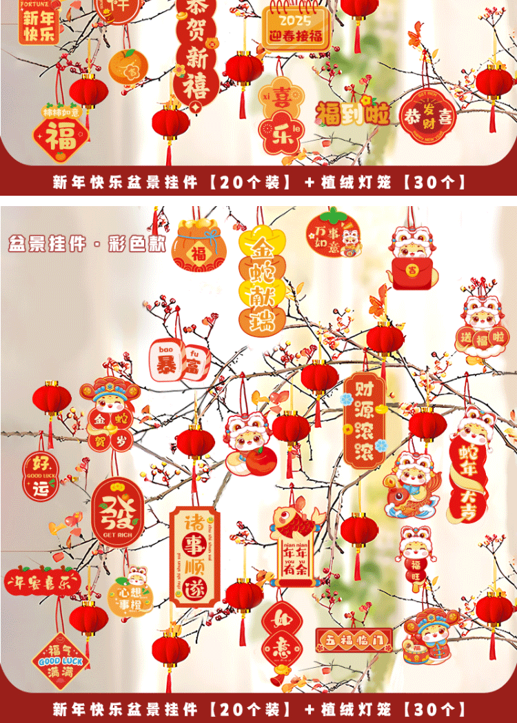 新年装饰2025蛇年春节年货小挂饰发财树上小灯笼挂件过年布置挂饰
