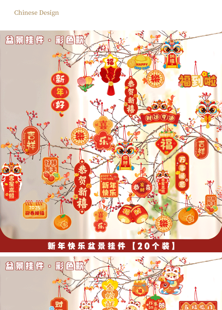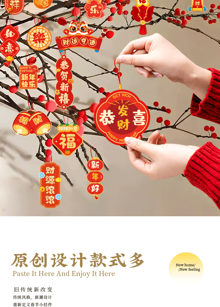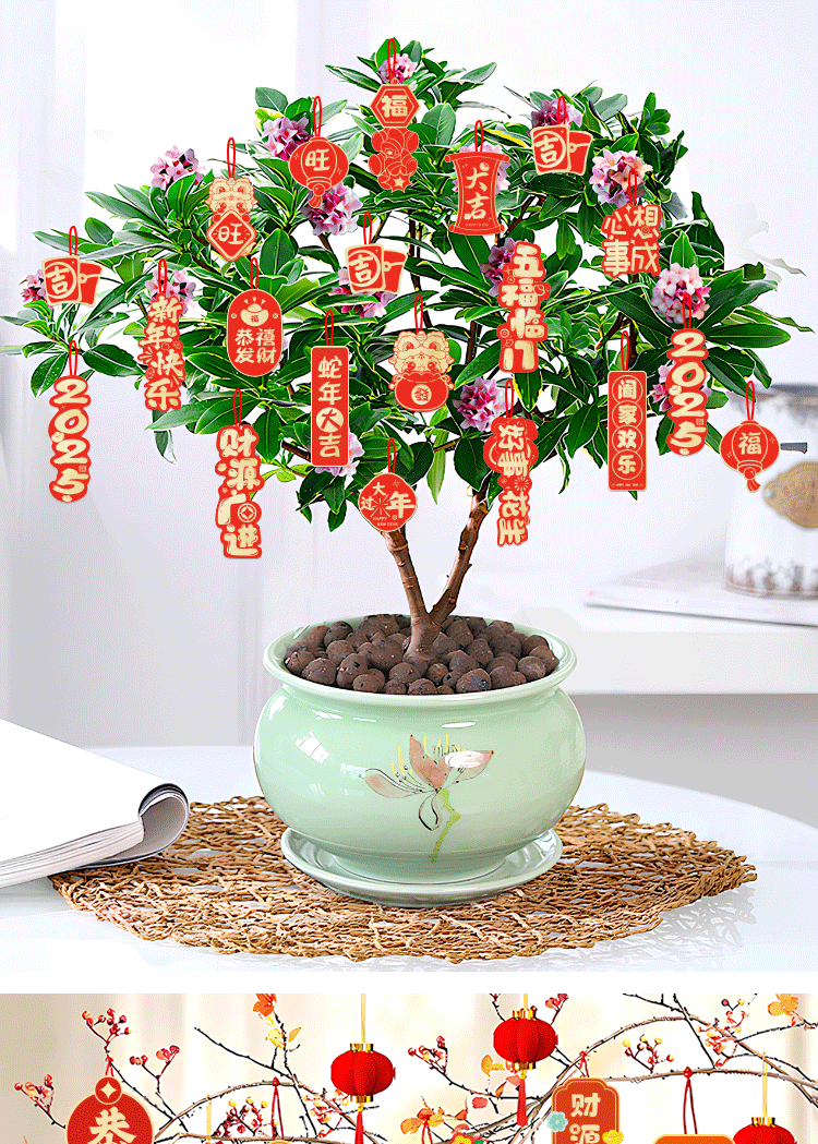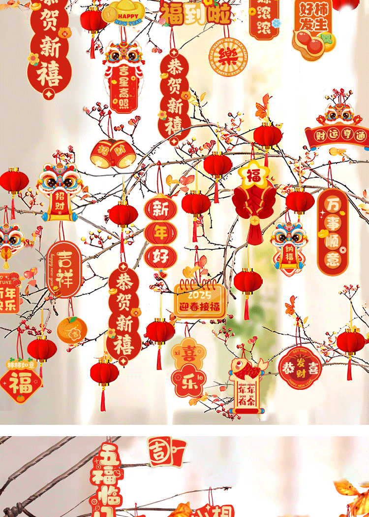 新年装饰2025蛇年春节年货小挂饰发财树上小灯笼挂件过年布置挂饰