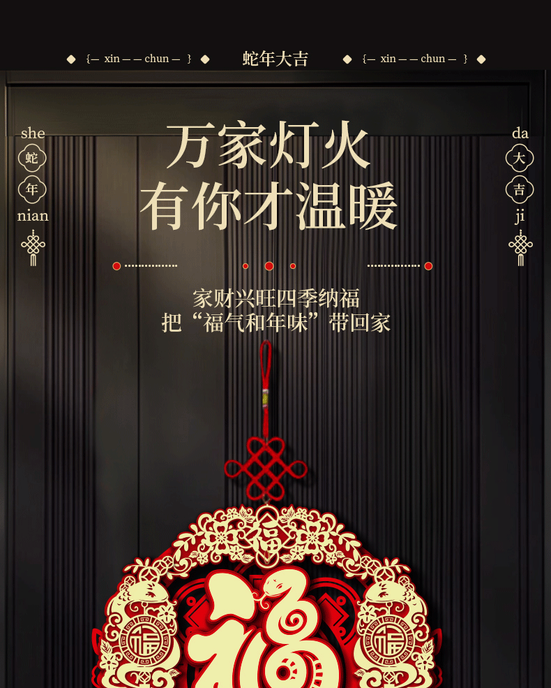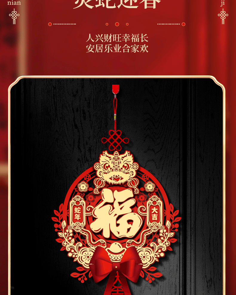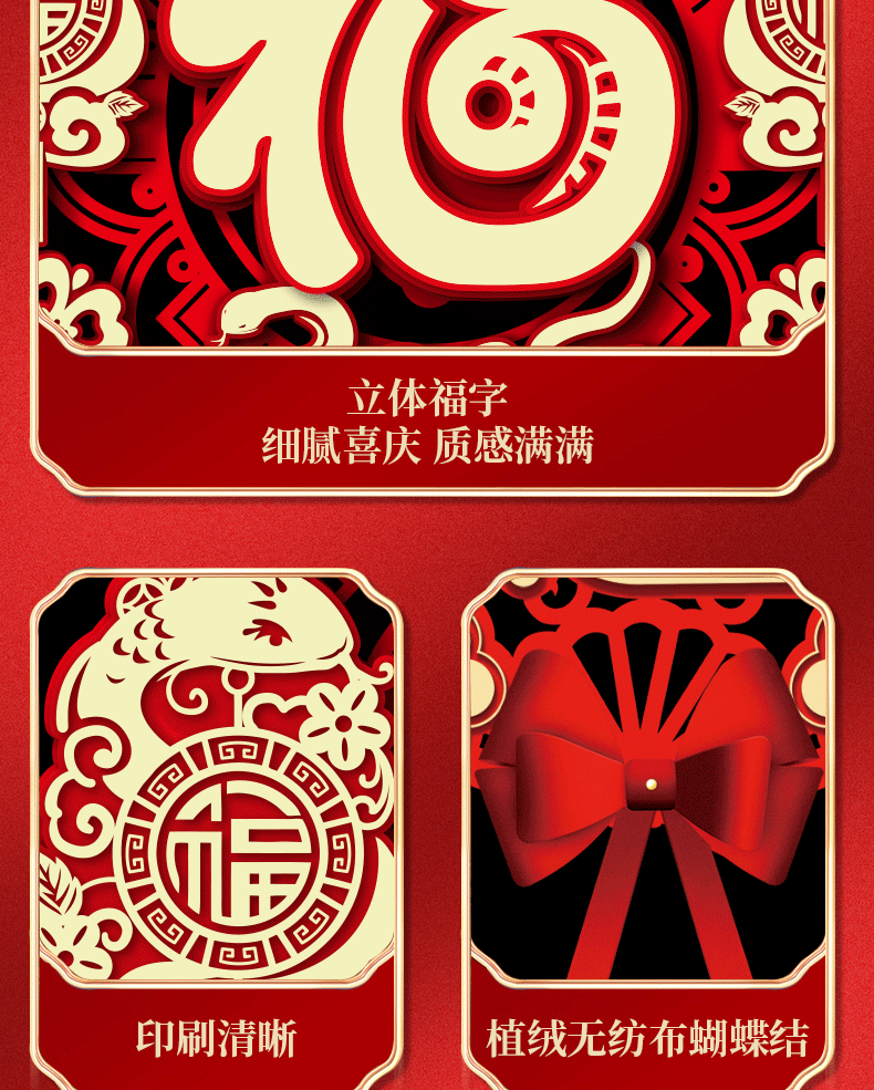 2025蛇年立体福字门贴磁吸春节新年过年装饰新款高端入户大门贴纸