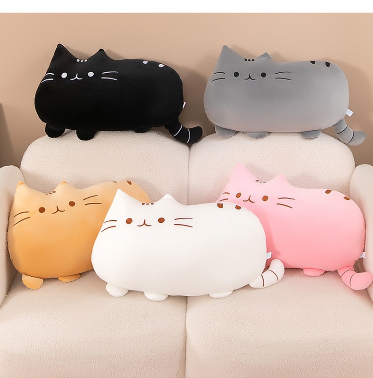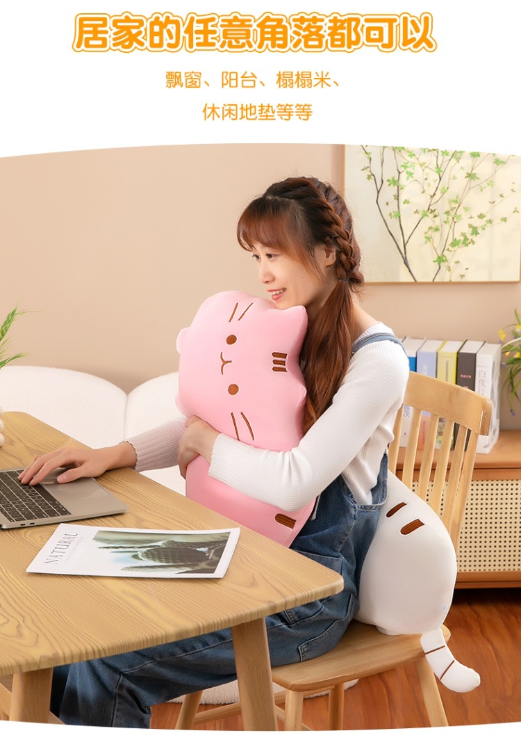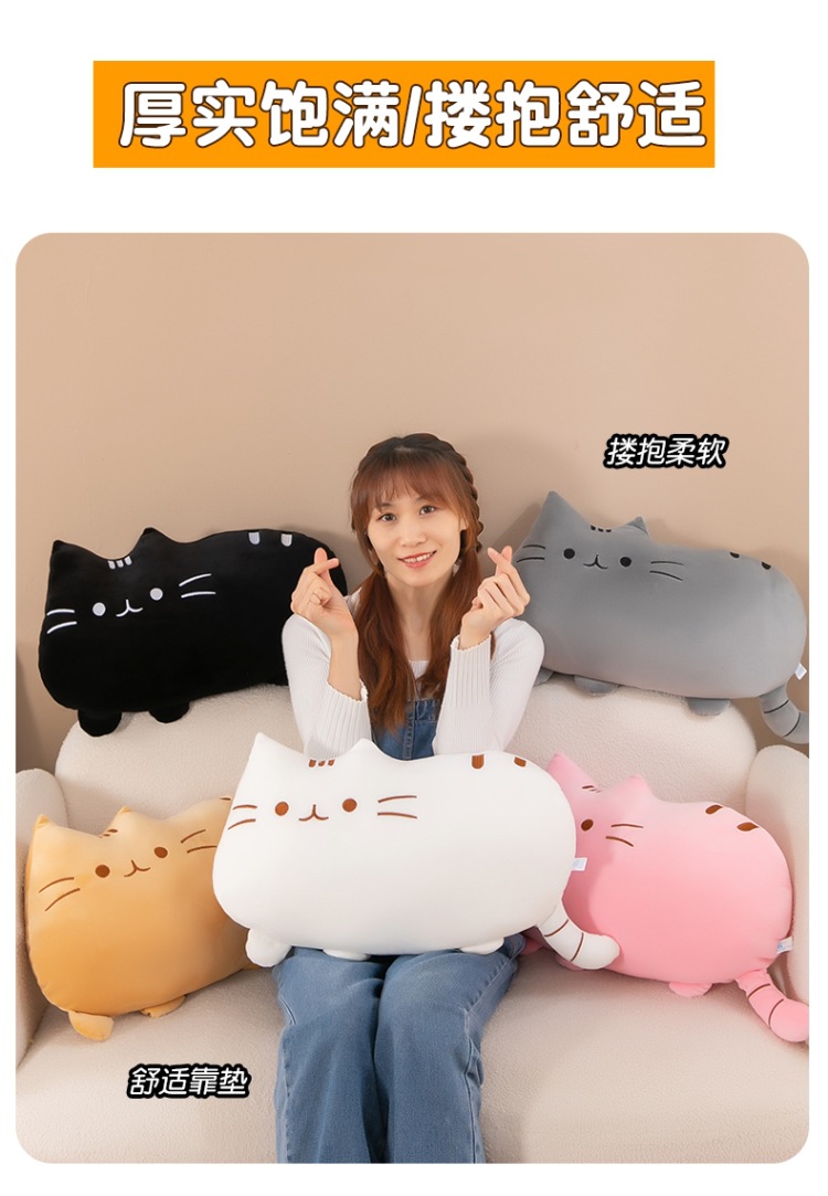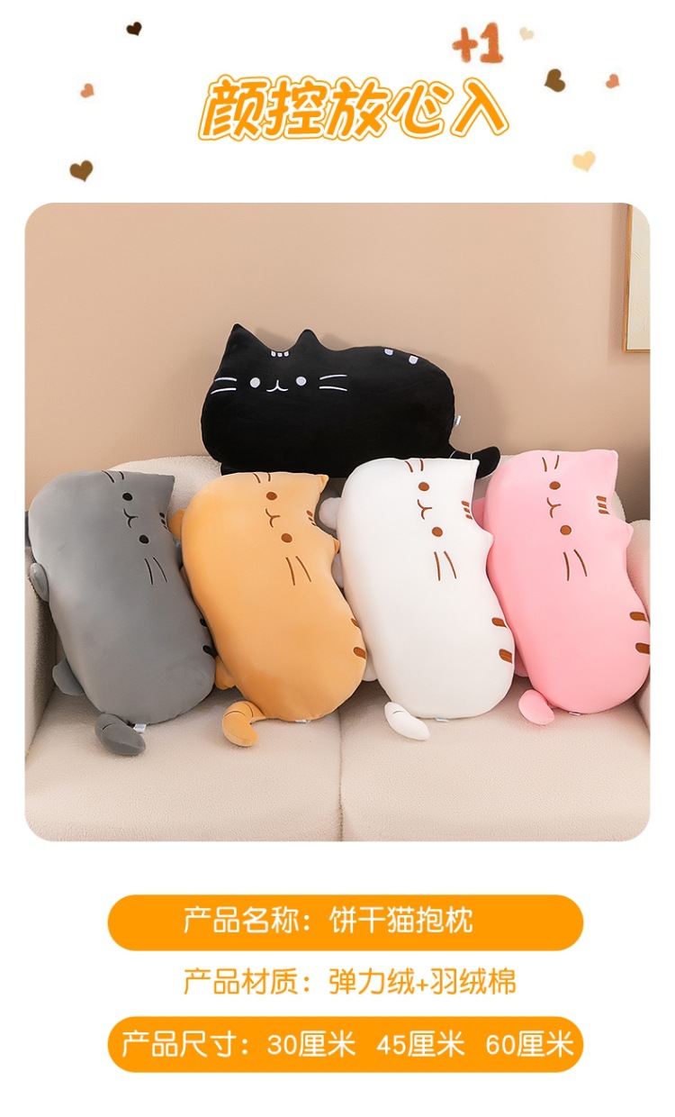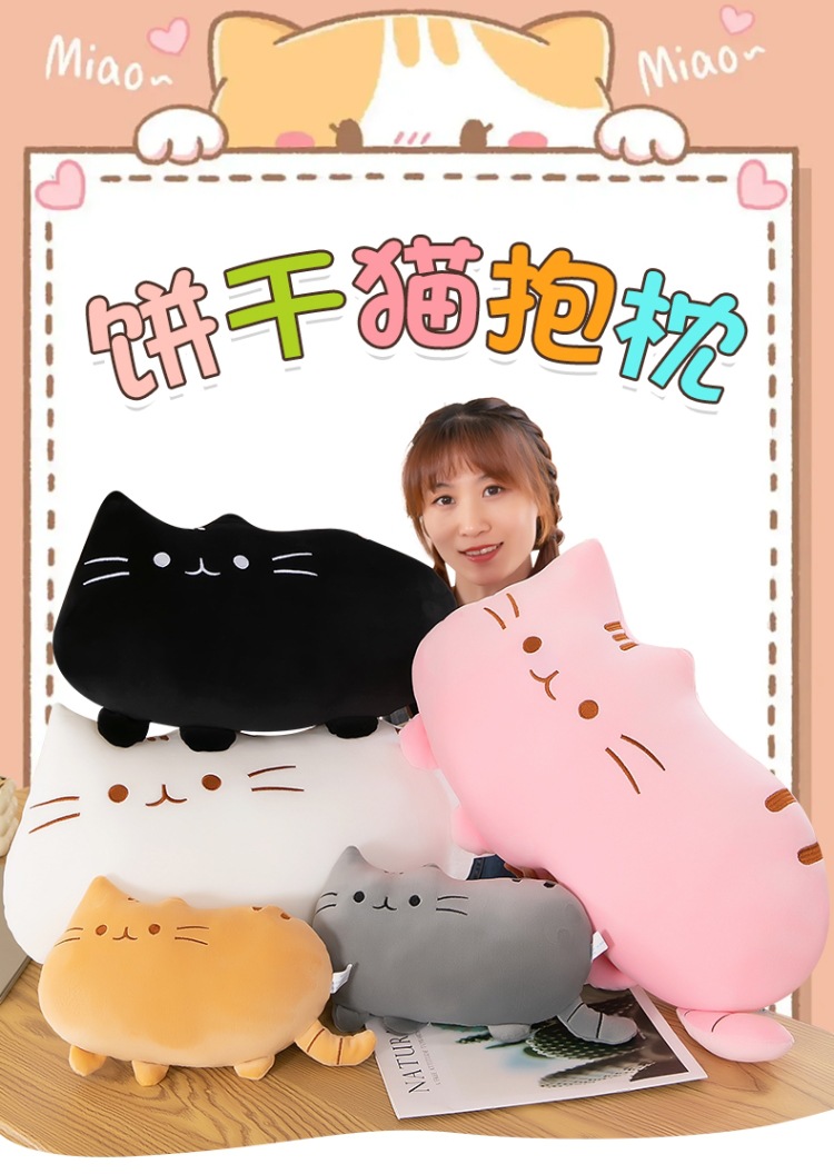 跨境猫咪抱枕沙发腰靠毛绒玩具娃娃长条猫公仔饼干猫咪椅子靠垫