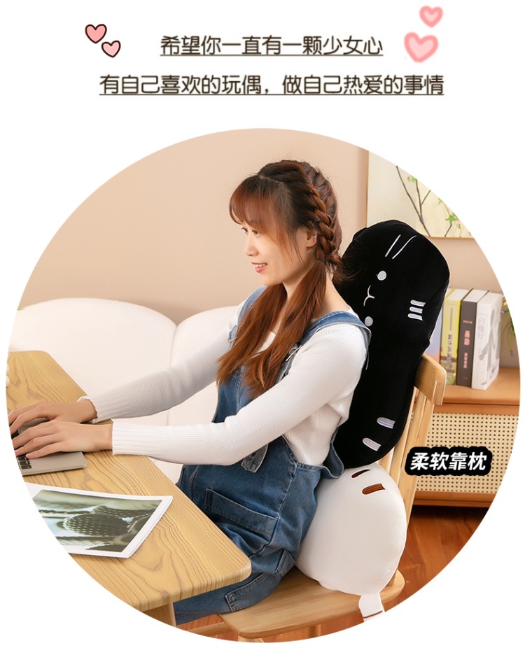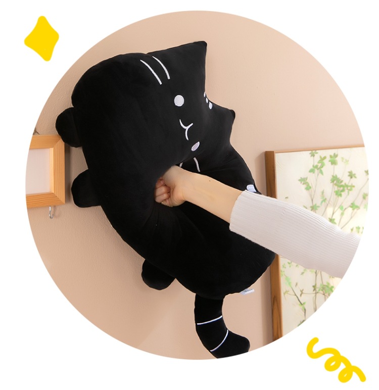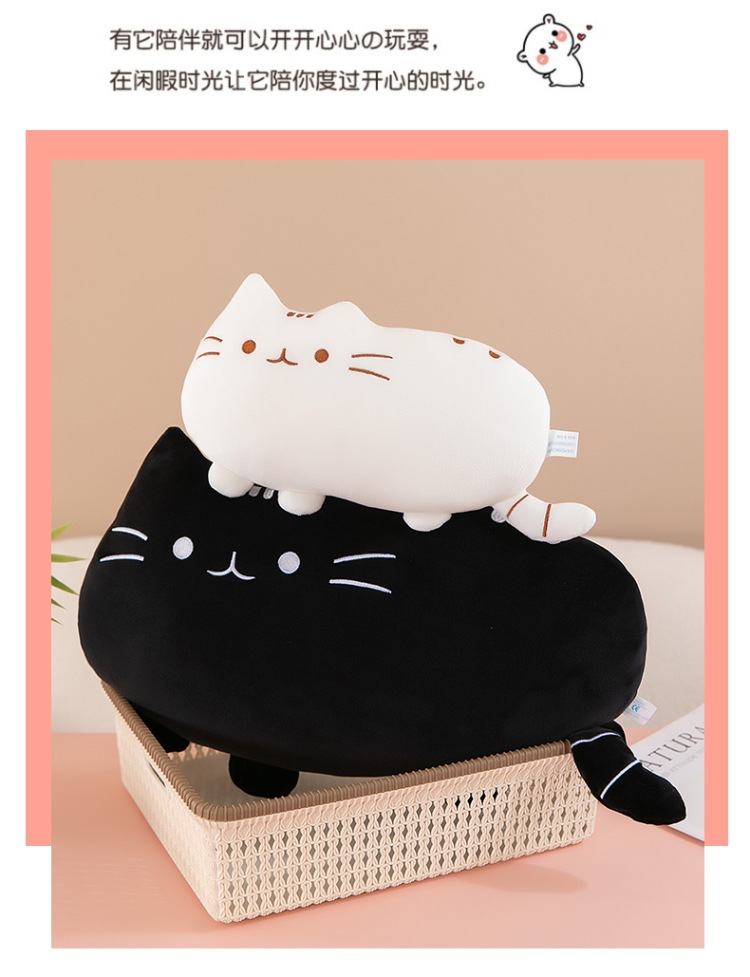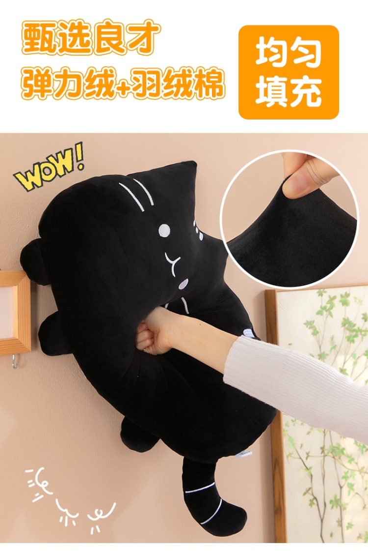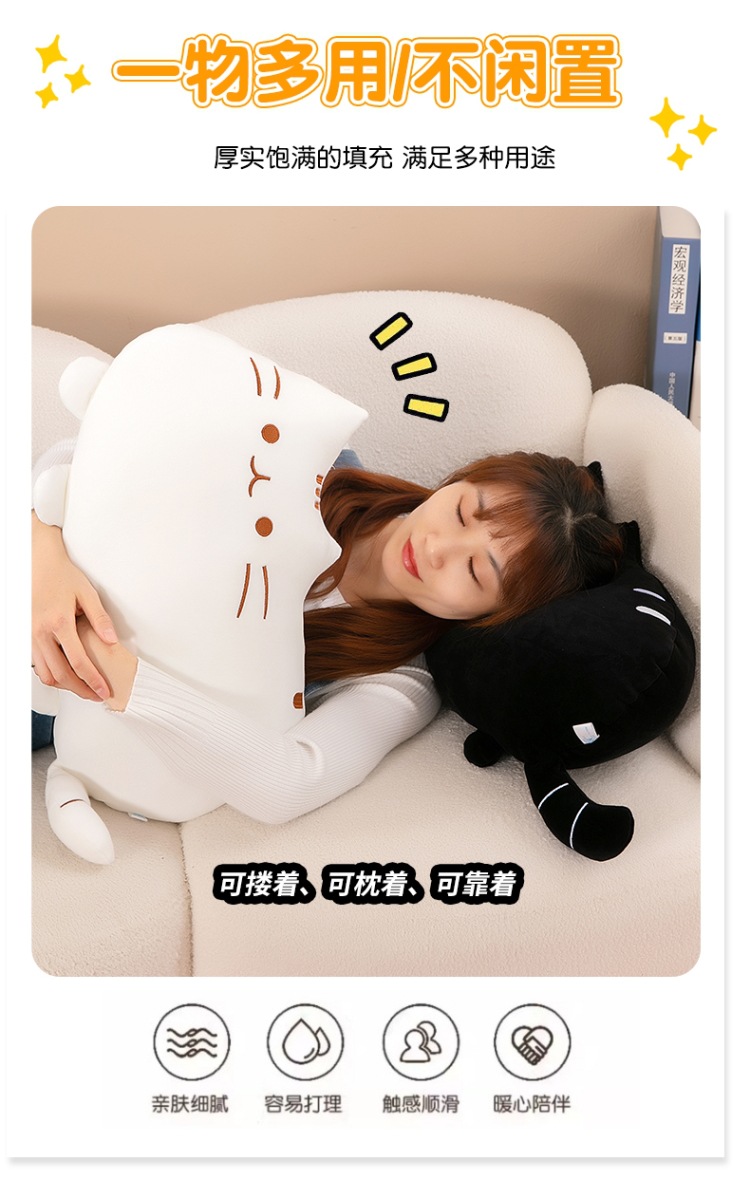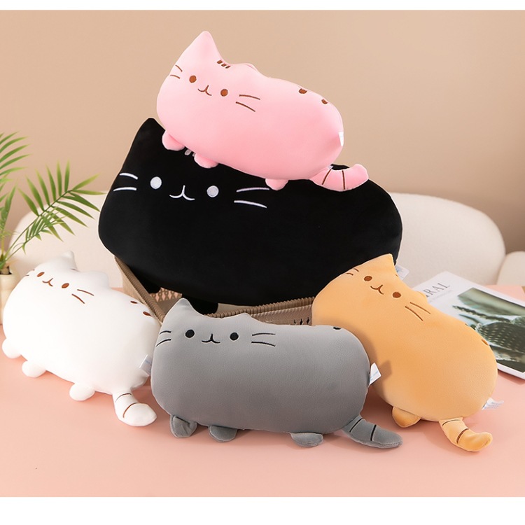 跨境猫咪抱枕沙发腰靠毛绒玩具娃娃长条猫公仔饼干猫咪椅子靠垫