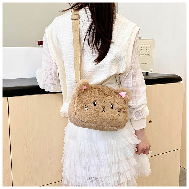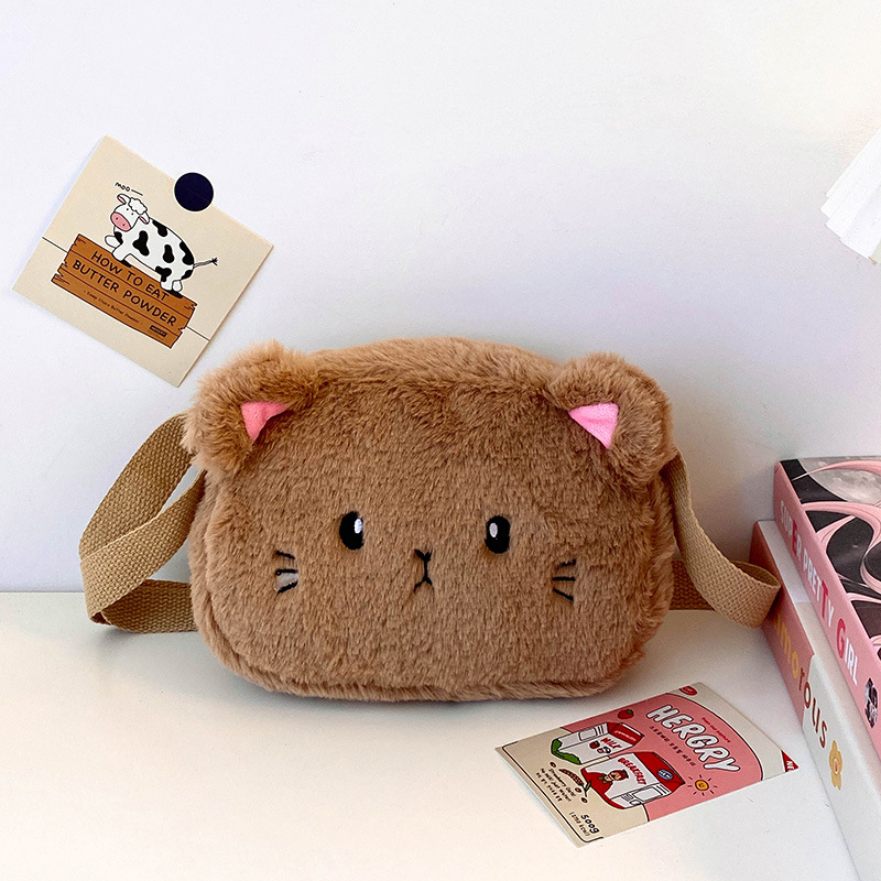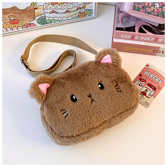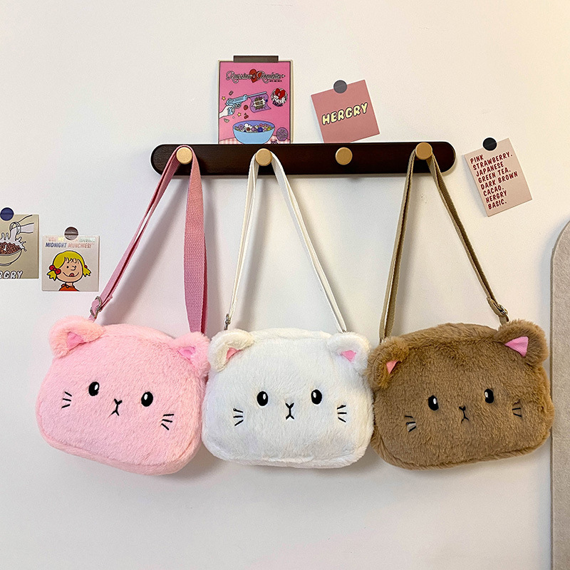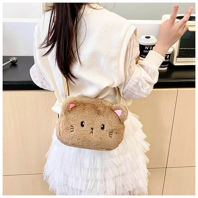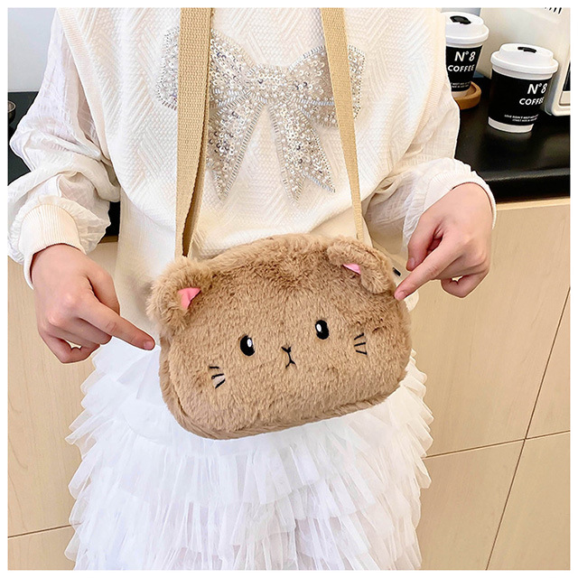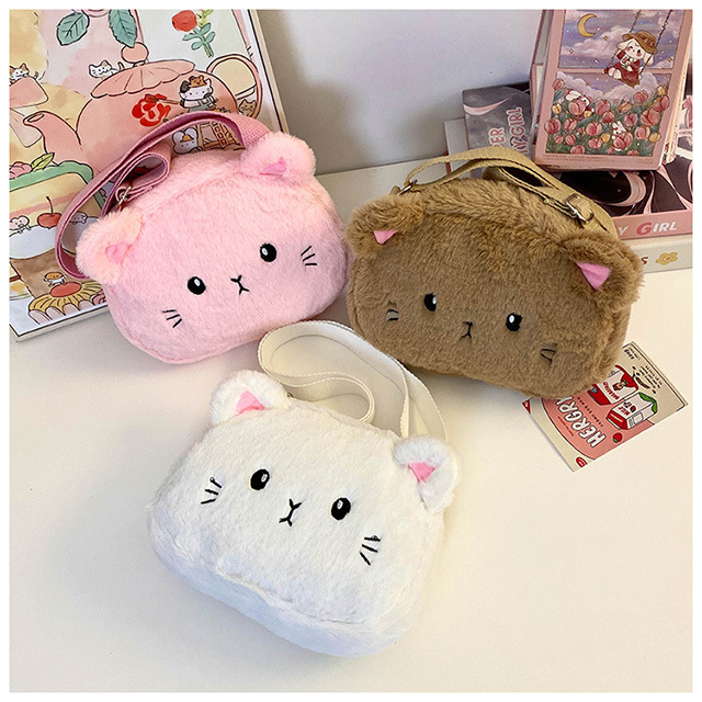 新款可爱猫咪毛绒包包可爱卡通斜挎包零钱包送女友儿童礼物批发