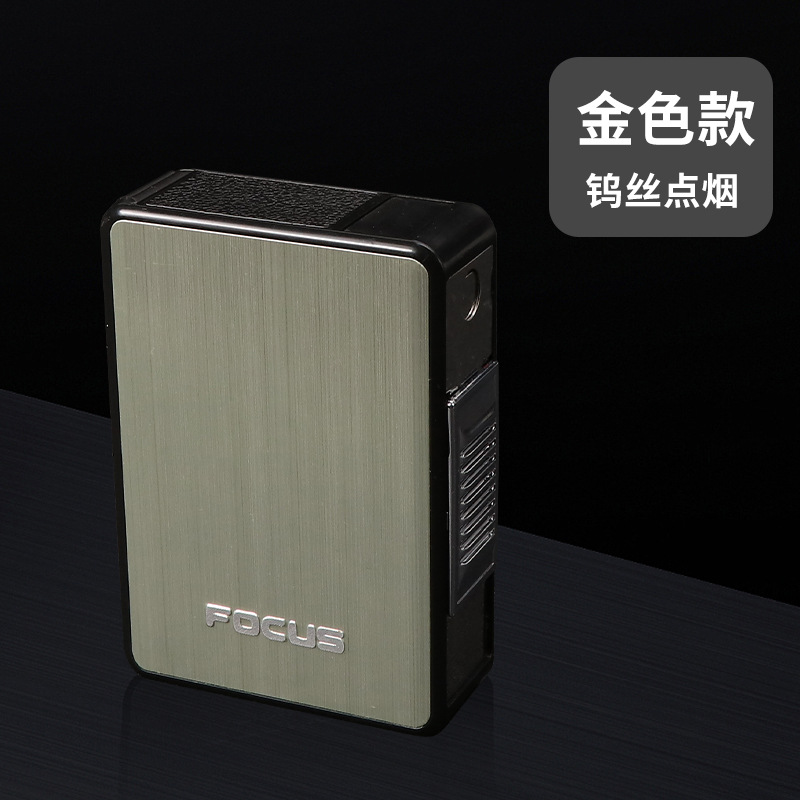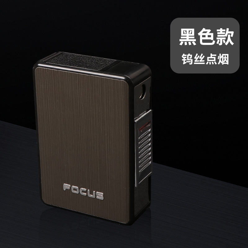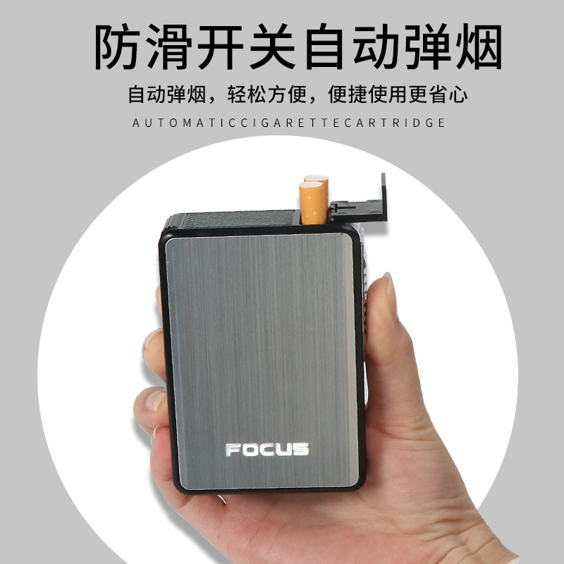 新款20支装防潮防味自动弹烟盒USB循环充电烟火一体式电烟盒批发