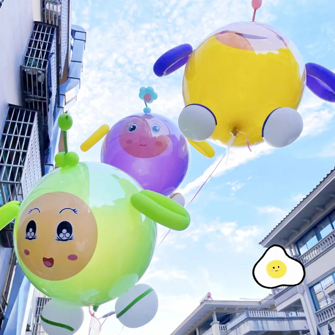 18寸蛋仔气球自带表情气球乳胶气球蛋仔派对手工制作diy材料包