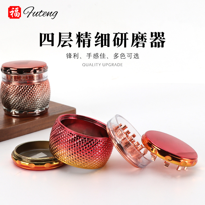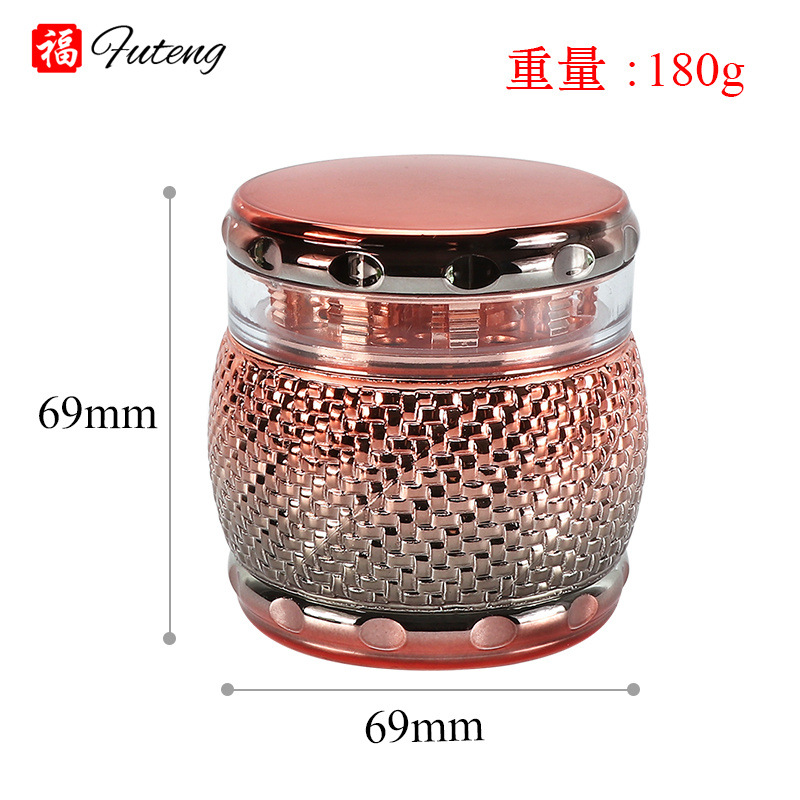 厂家直供电镀创意炫彩树脂磨烟器 70MM四层编织纹路酒桶研磨器