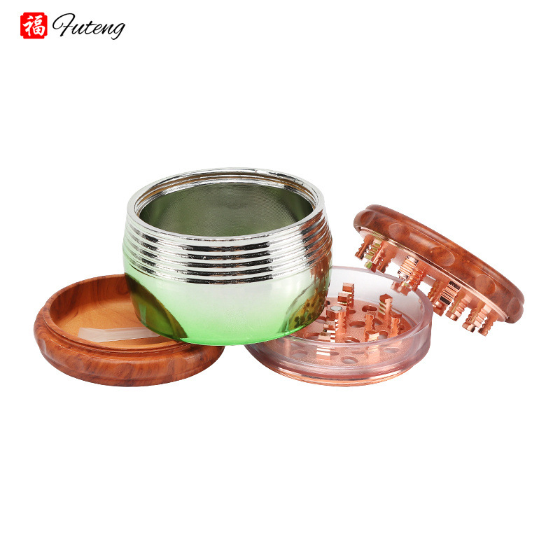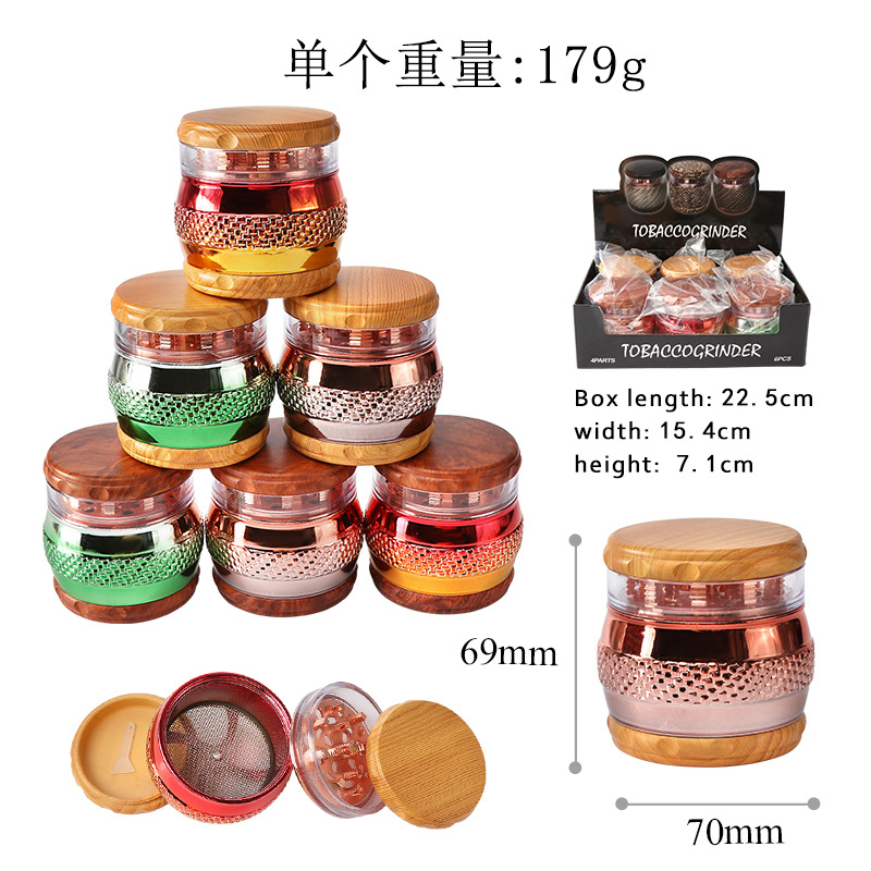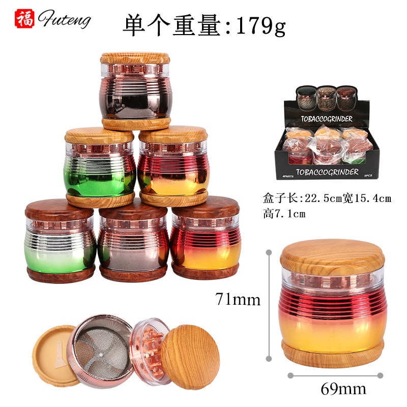 跨境新品炫彩渐变色树脂磨烟器 现货大号四层仿木质金属齿研磨器