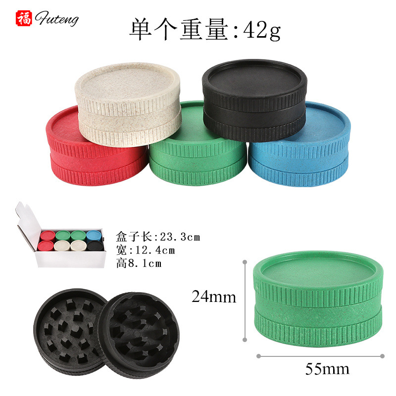 55MM可降解塑料两层磨烟器 烟具现货新品环保材质贴纸研磨器