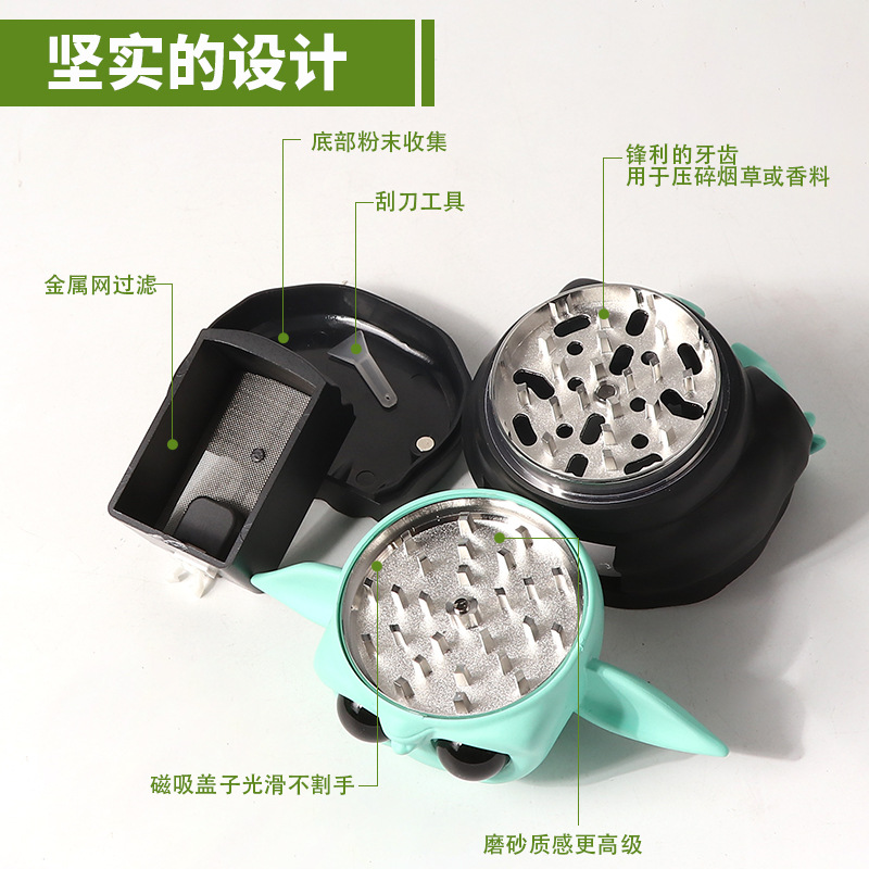 跨境爆款卡通外星人胖犹达锌合金4层3格按压抽屉金属磨烟器碎烟机