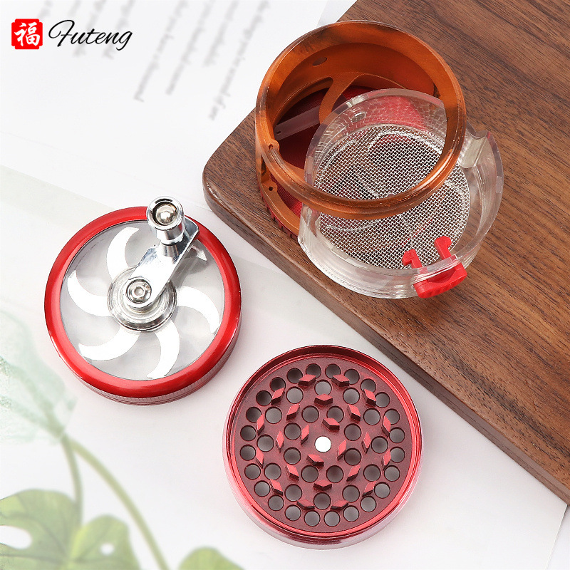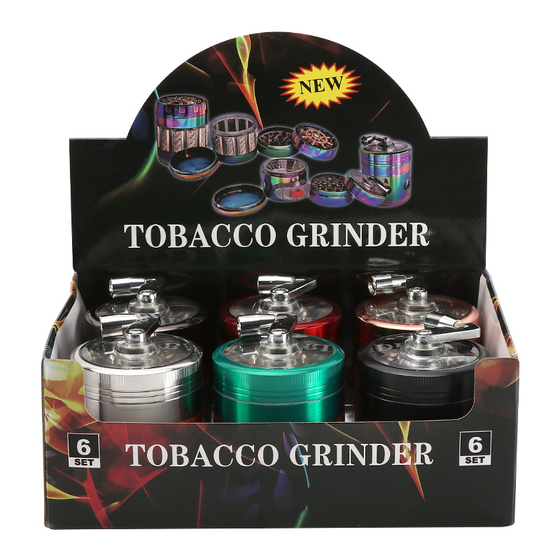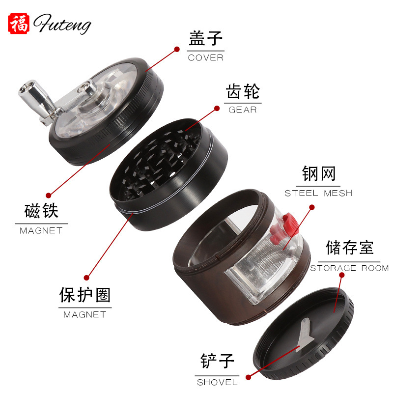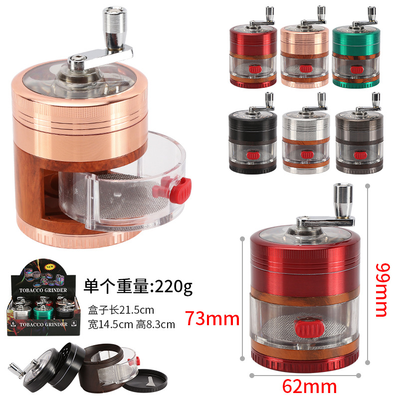 现货锌合金手摇带抽屉63MM磨烟器 跨境货源透明开窗金属研磨器