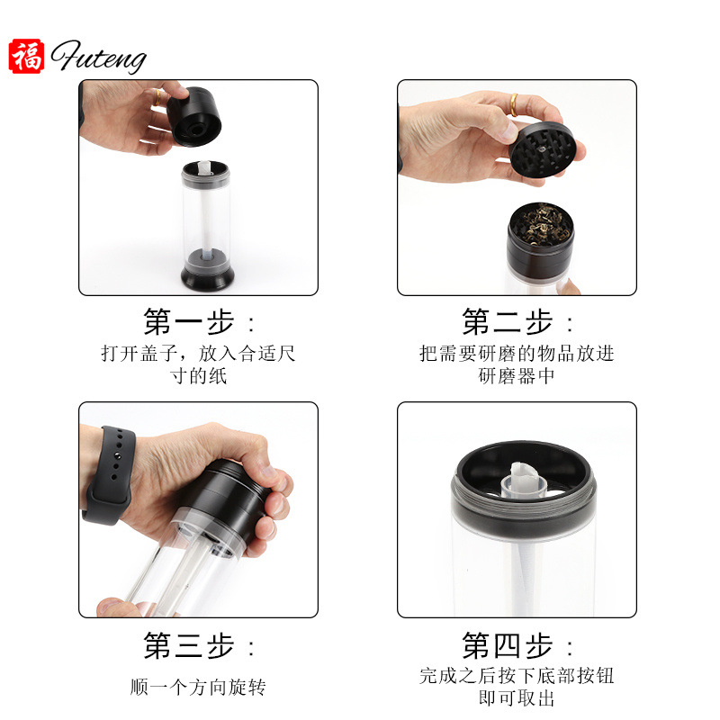 新品热卖60MM锌合金平板磨烟填烟器 创意手动一体式填充研磨器